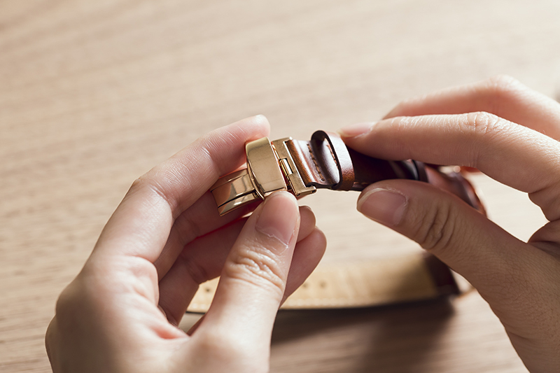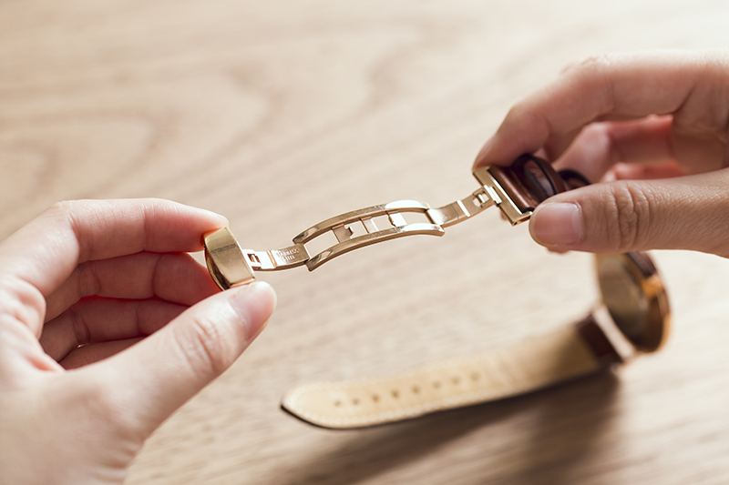 步驟五:將錶帶穿入並扣上另一邊摺疊錶扣至「卡」一聲,即可完成。以下慢動作拆解給大家看。
