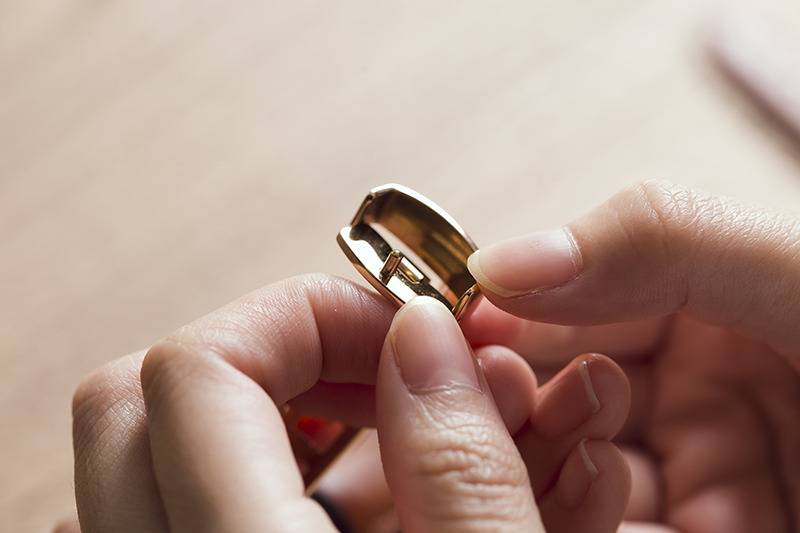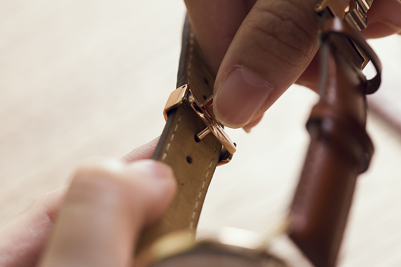 最末端的錶扣記得打開,否則待會錶帶會穿不過去。