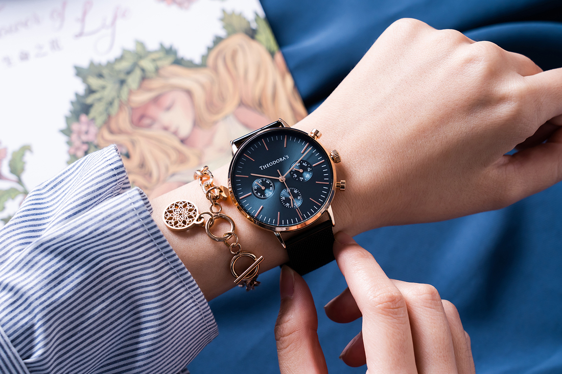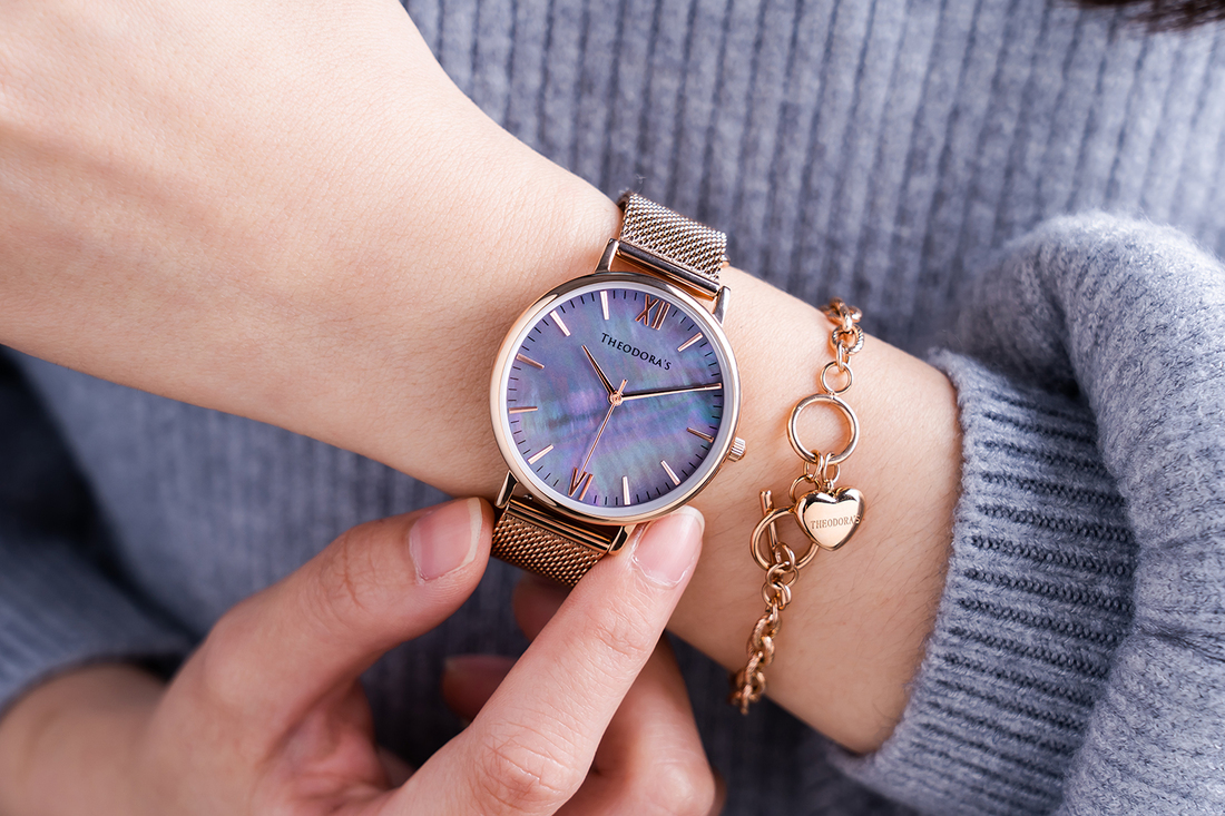手錶推薦:Venus 母貝灰藍-米蘭玫金