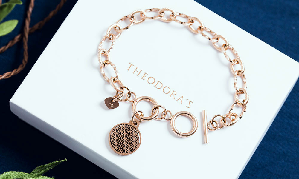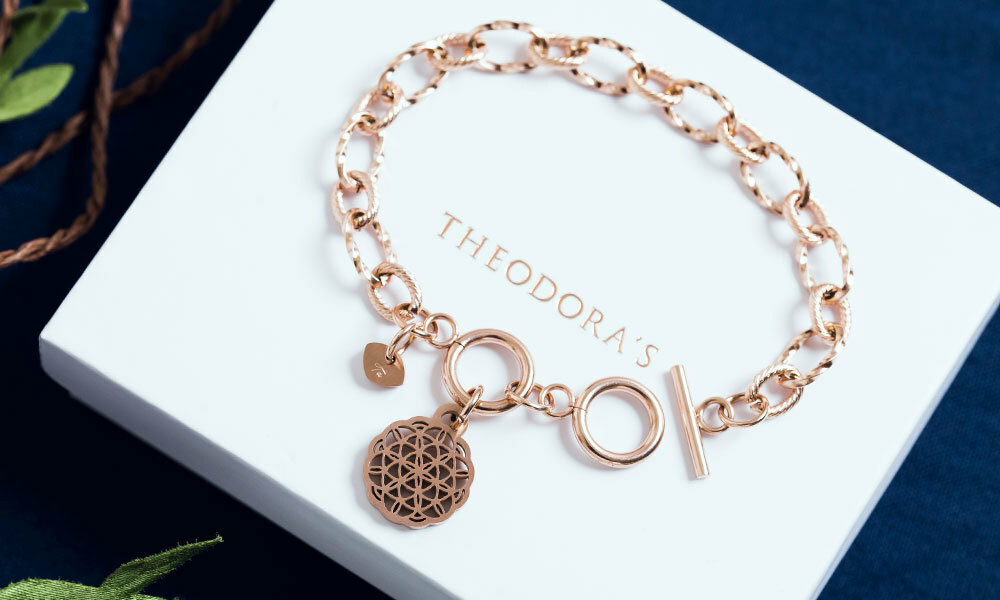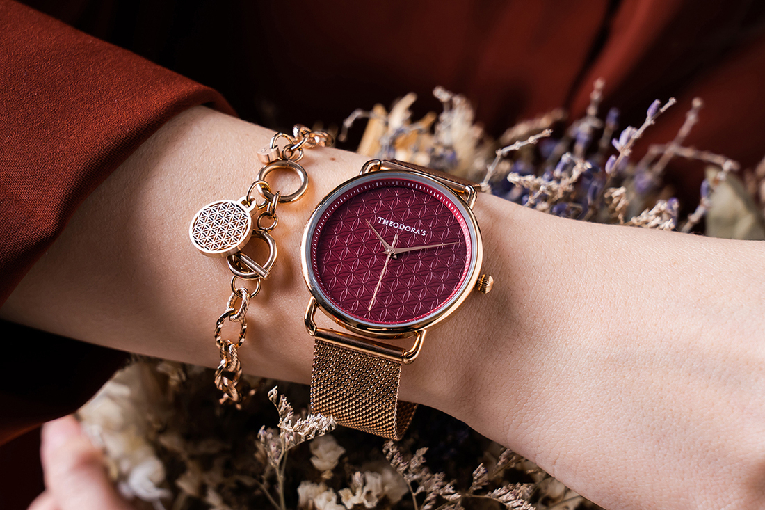 這款生命手鍊設計取自於生命之花這個圖騰,交纏的圓形成充滿韻律且瑰麗的美,簡單的繁複,最適合搭配一款紅色優雅美錶,加上一點花束就能撫慰你的心。