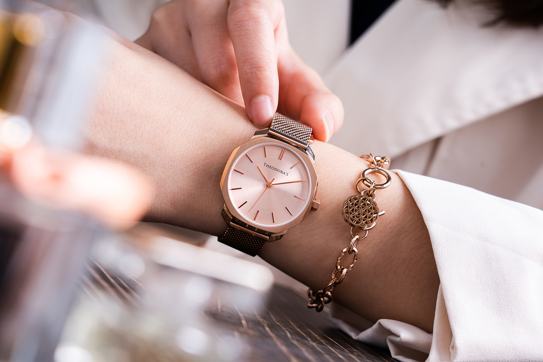 這款療癒手鍊,無限綻放的圓,正用她的美麗暈染整個世界,搭配一款充滿氣質的粉膚玫瑰金手錶,就是最療癒人心的美麗組合了。