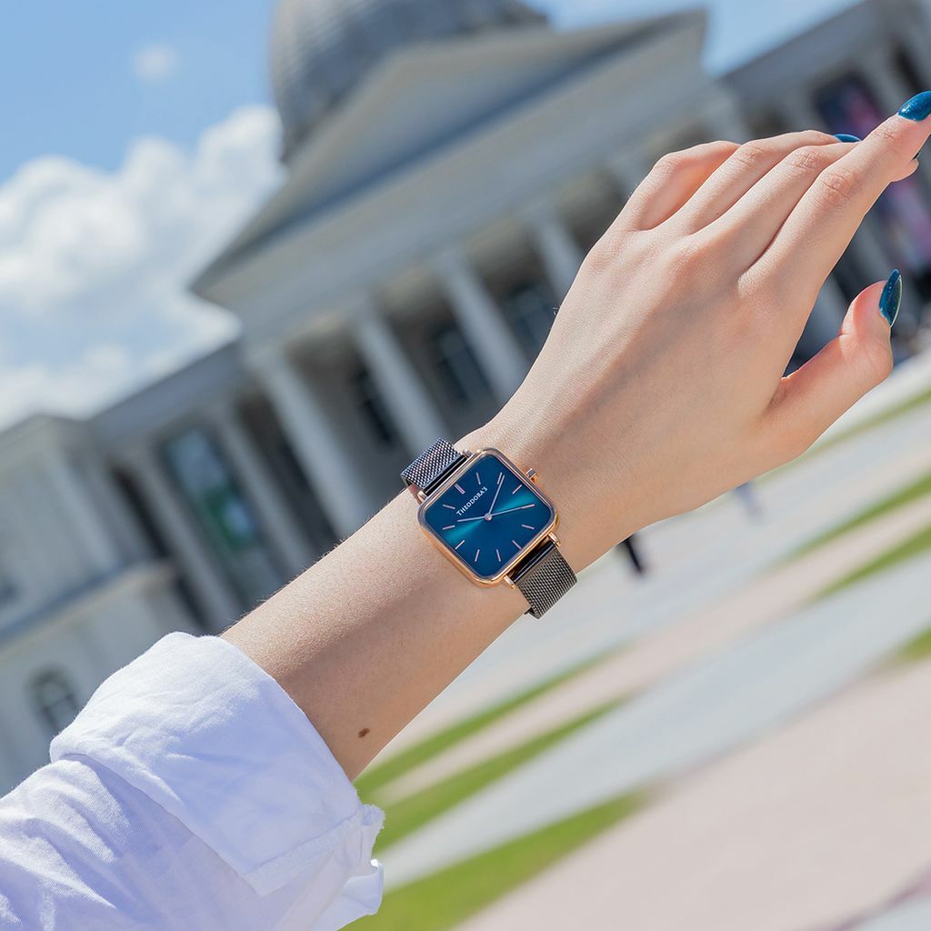戴著方形錶在這裡拍照,更顯優雅獨特。