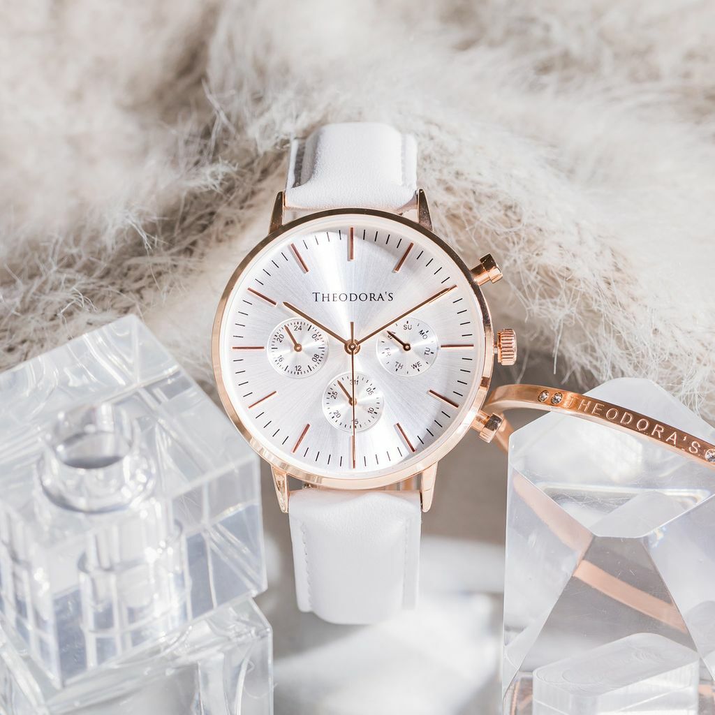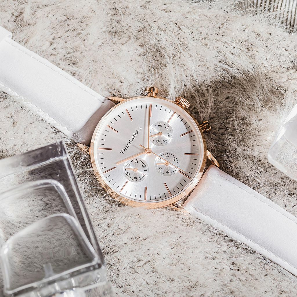 這款希奧朵拉Apollo真三眼白色手錶,搭配白色真皮錶帶,絕無僅有的純白色夢幻美,在社群上受到國內外粉絲的一致好評,收藏數超高。