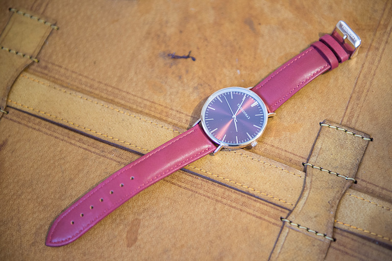 像我手上這支酒紅面的真皮腕錶,竟然只要NT:1549