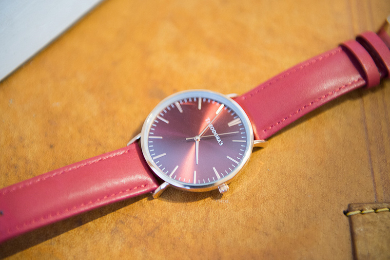 Theodora's|Hera 簡約女性款真皮腕錶 酒紅面-紅