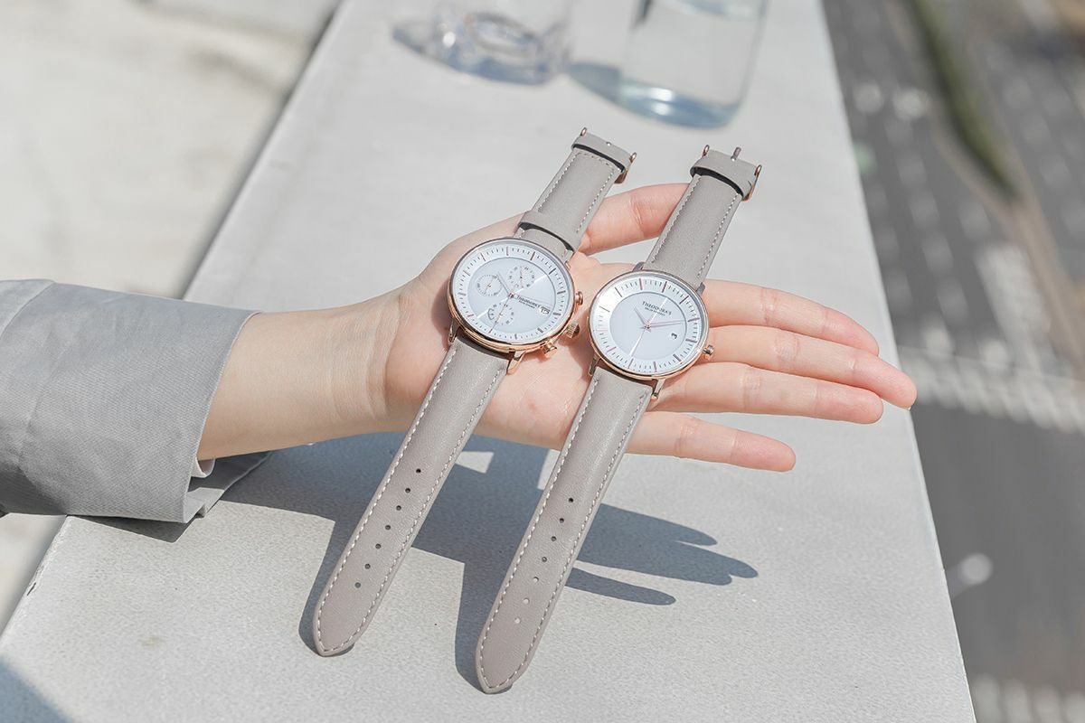 清新脫俗的白灰錶面,搭配淺灰色錶帶,兩者超級融合,讓人感覺就像躺進一團雲朵裡般舒服,令人只想屏息靜靜欣賞。
