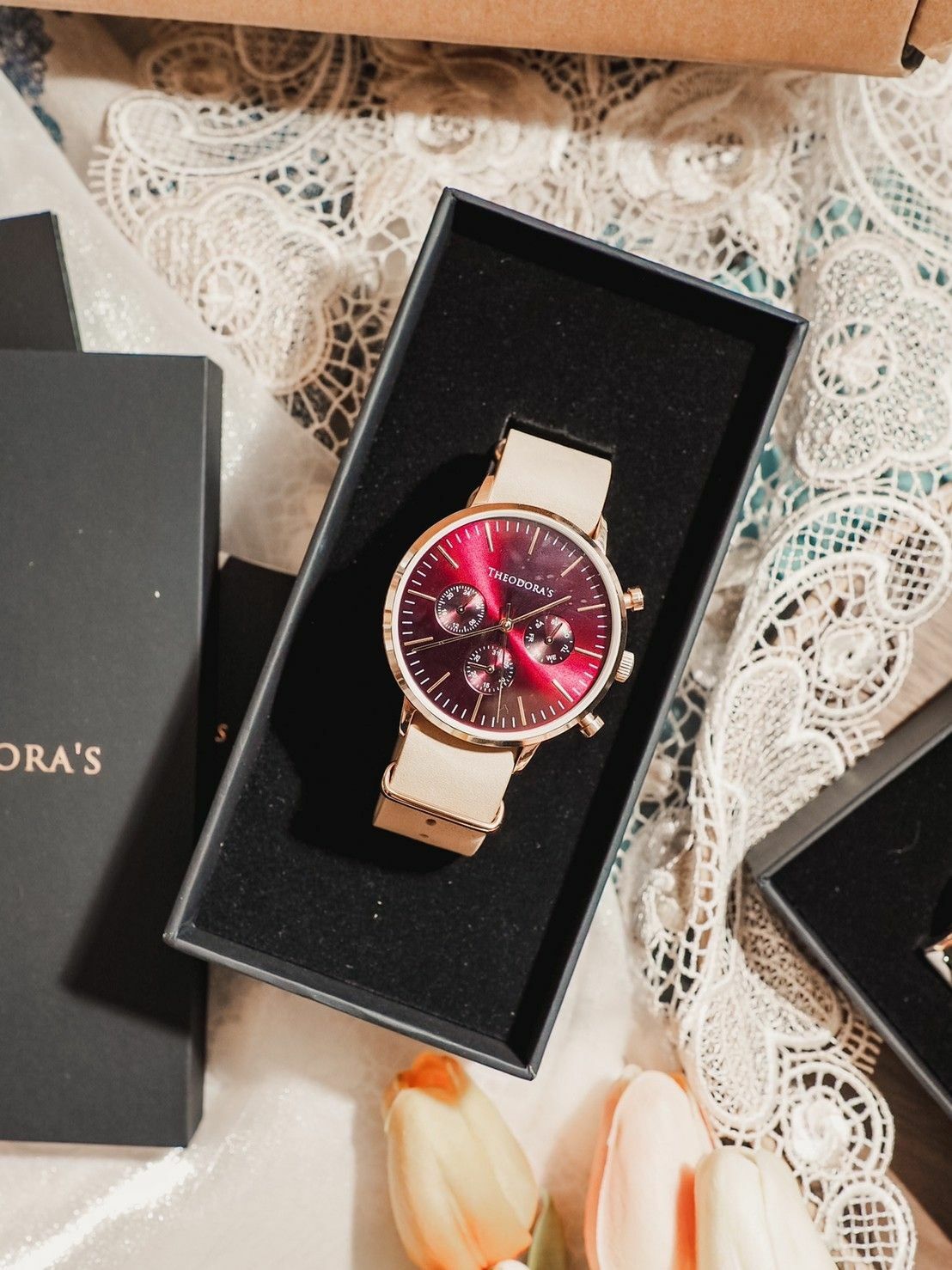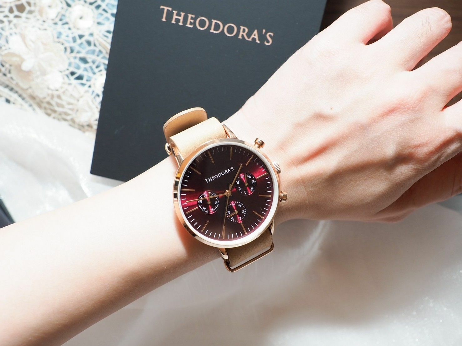 讓我一見鐘情的 ⟪ Theodora's 希奧朵拉 ⟫ Apollo 中性三眼瘋馬皮腕錶,三眼酒紅超亮眼!