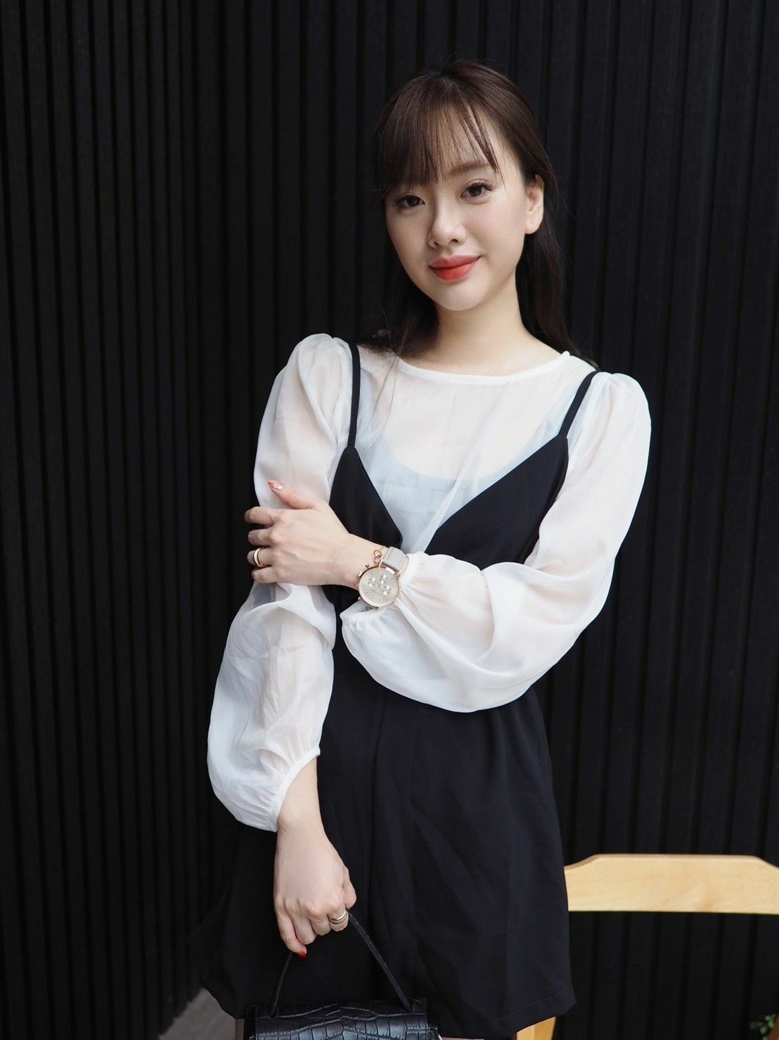 日常的穿搭跟約會穿搭都不違和,真皮灰配戴起來還蠻顯白,