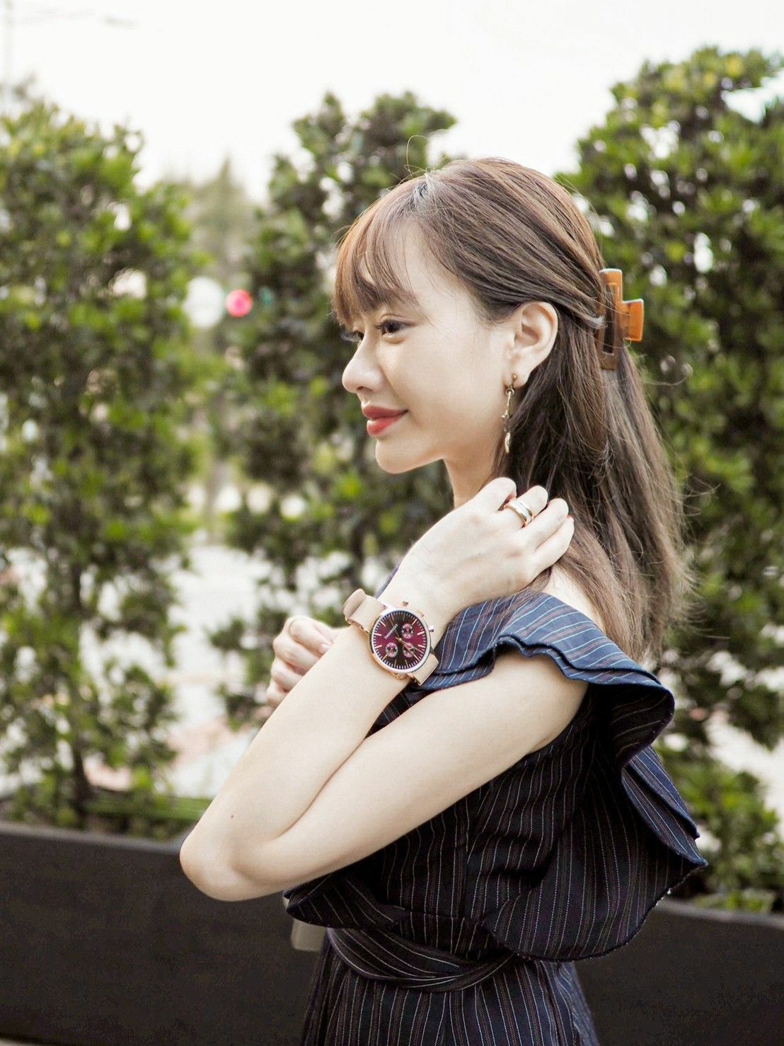再次登場的是我最愛的酒紅錶款,除了用錶帶的色彩去搭配穿搭的配色比重,