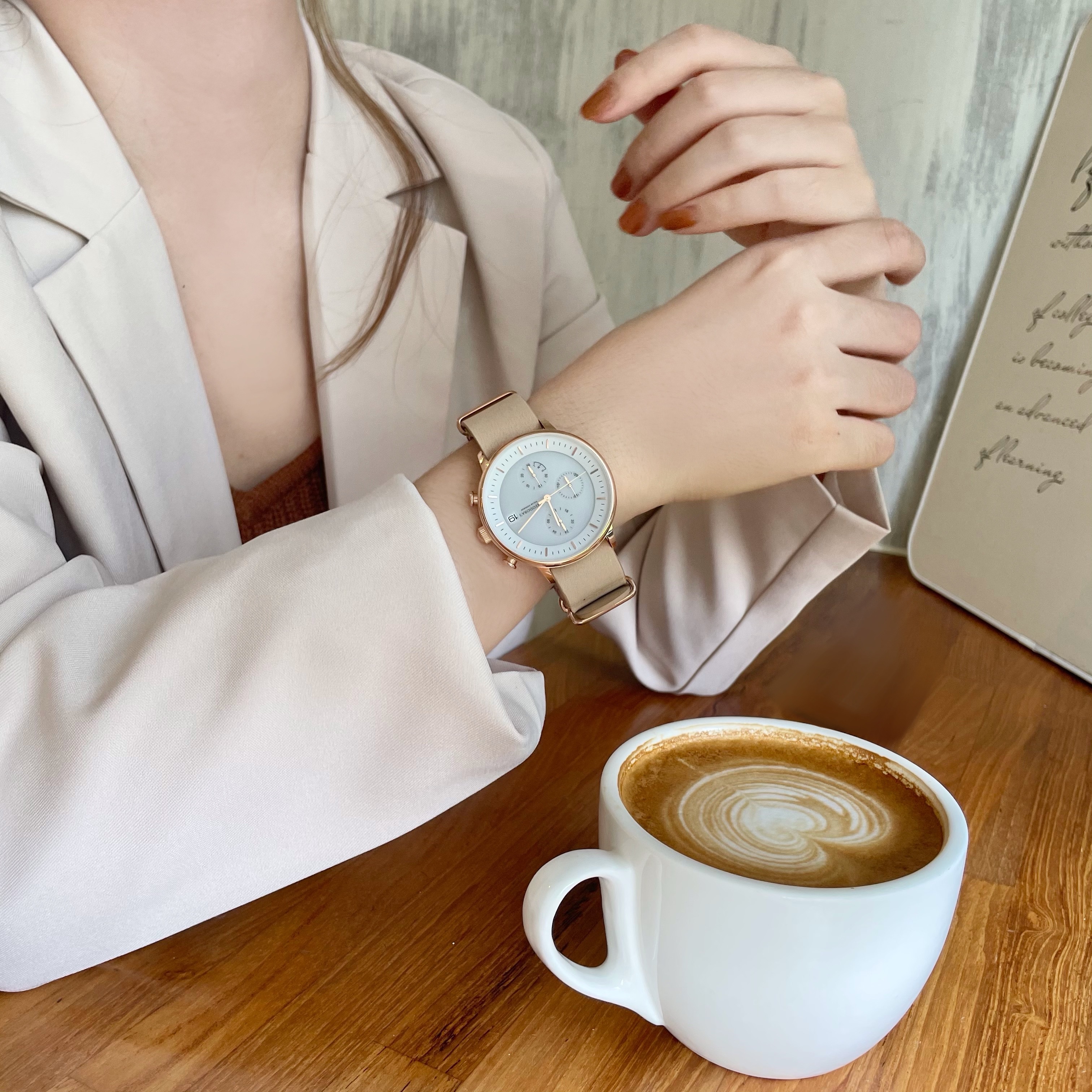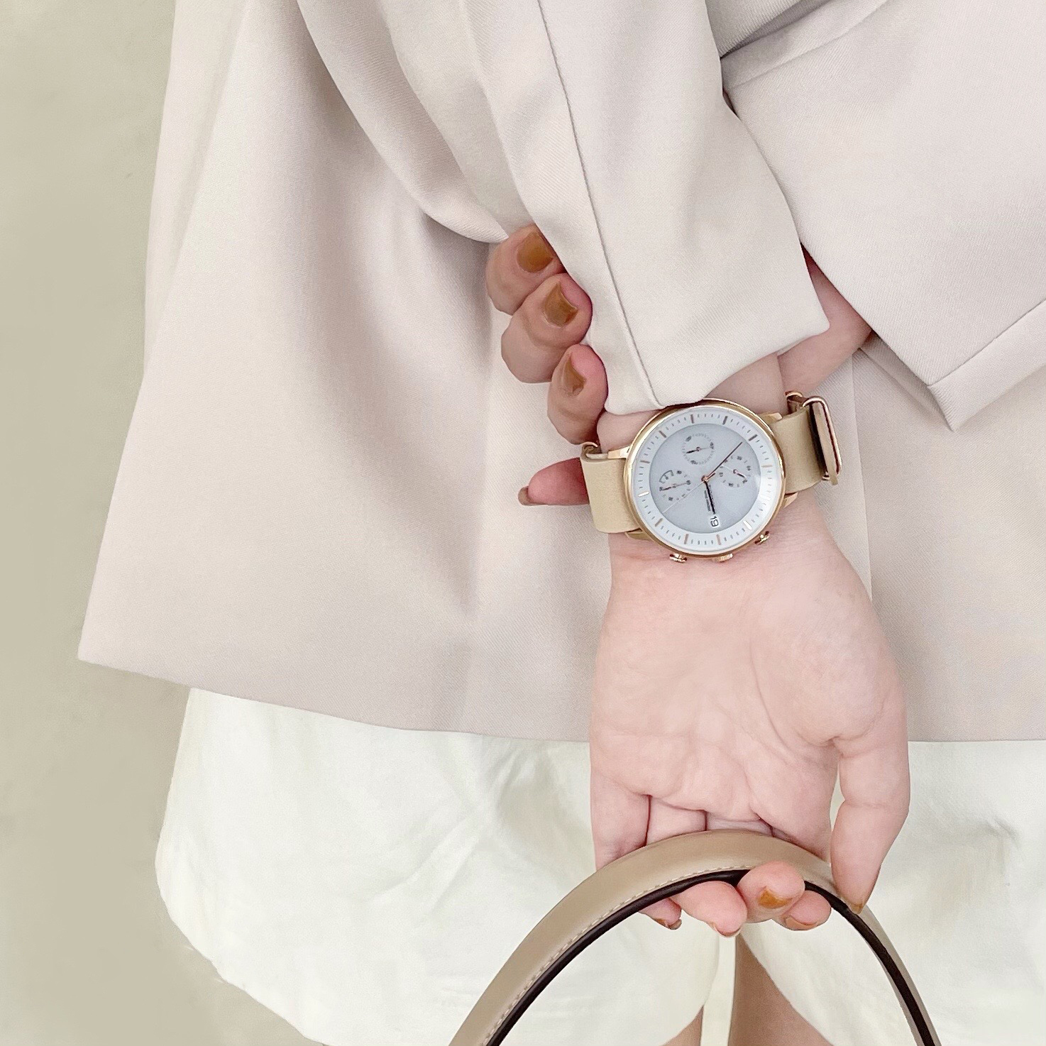手錶與穿搭同色系絕不會出錯,Mercury太陽能瘋馬皮奶茶色,整體搭配簡約低調卻不失質感,瘋馬皮的異材質增加搭配細節!奶茶色愛好者必收!