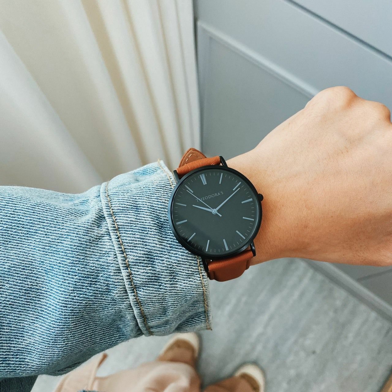 霧面黑色與奶茶色瘋馬皮錶帶形成了對比,深色錶盤與淺色錶帶搭配讓整體更有層次,更能凸顯不凡品味。