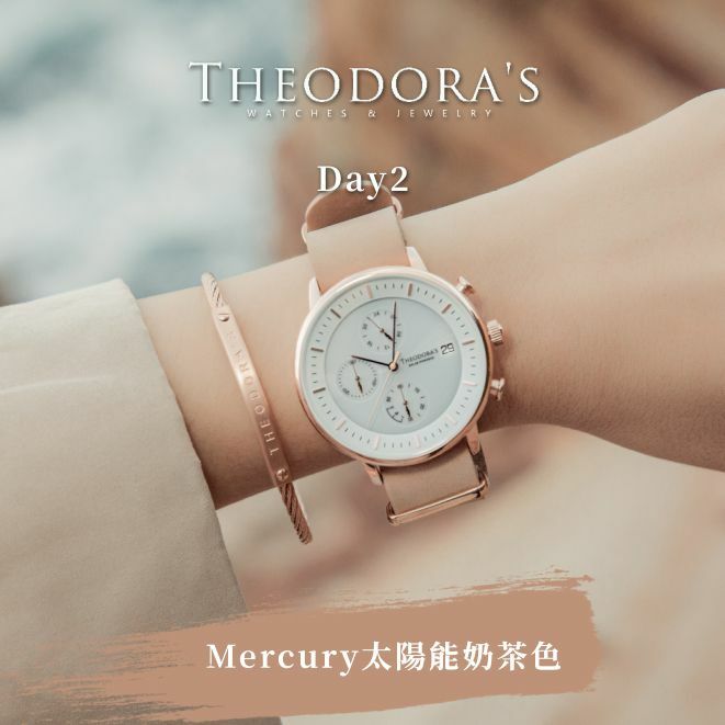 Mercury三眼太陽能搭配奶茶色錶帶,可愛的色彩不只療癒自己也療癒別人,讓你一整天心情都美好,每個人都被你散發的溫暖迷人所吸引,萬人迷非你莫屬。