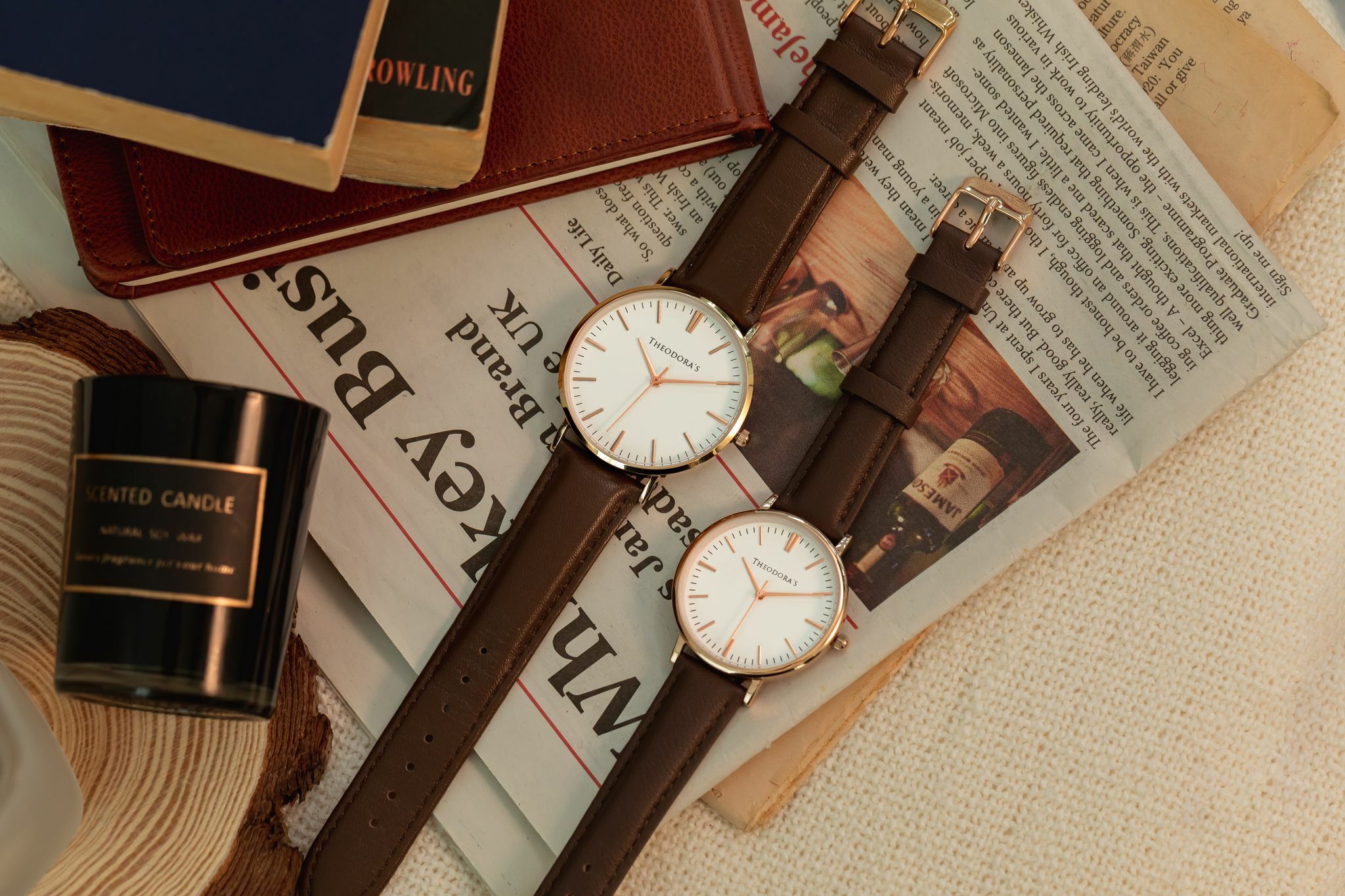 Hera真皮腕錶 蛋殼白面-真皮深棕