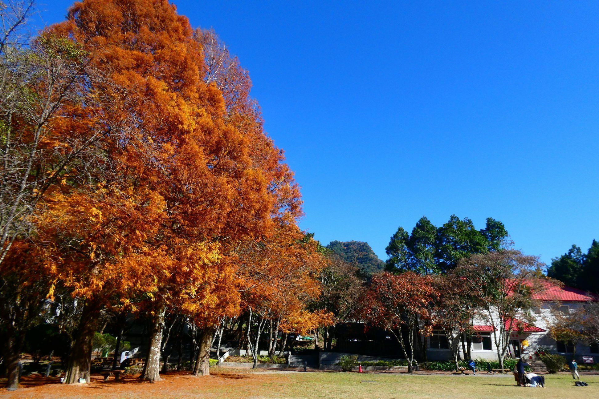 在奧萬大森林遊樂區裡的綠野山莊前,指標性3顆超過20公尺的超大落羽松,因為奧萬大的高海拔關係,只要氣溫下降,就會馬上變得紅通通的,畫面壯觀總會吸引非常多遊客。想要朝聖的朋友也可以關注「奧萬大情報站」粉絲專頁,只要落雨松轉紅都會在上面公告喔!