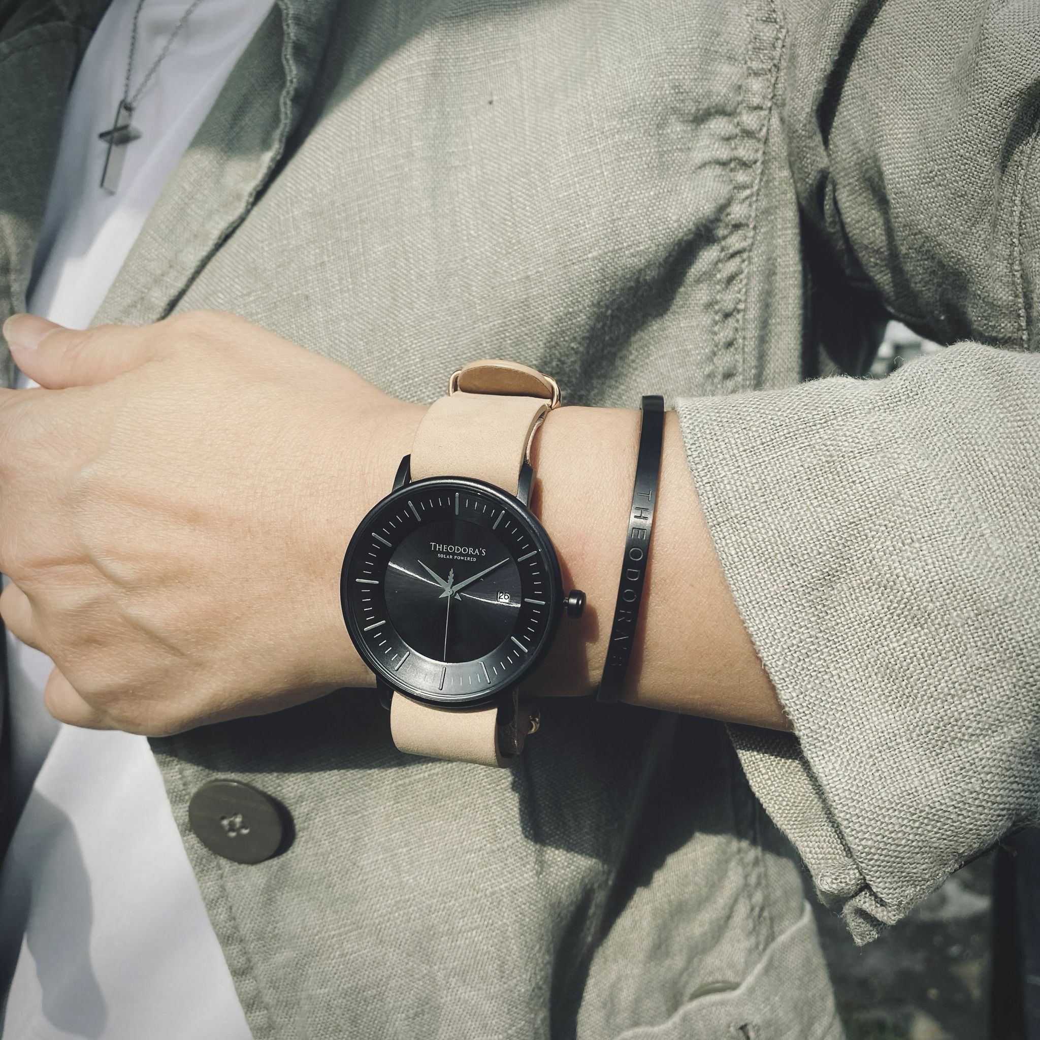 秋色錶款 #2 Aurora 太陽能簡約霧黑-瘋馬皮奶茶色