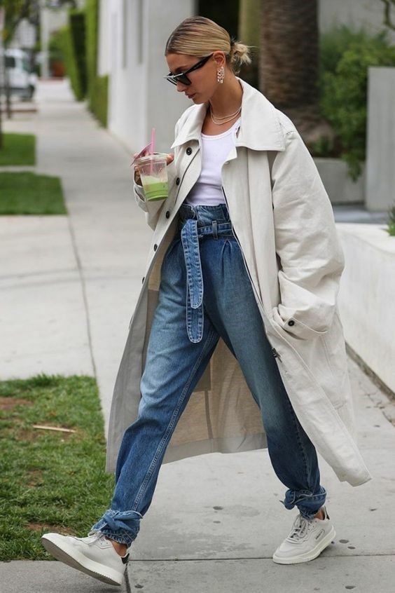 選擇牛仔褲時可以挑選有些許造型的款式,例如褲管打結、微喇叭亦或是刷破的款式,搭配長版風衣展現強大氣場,同時也能夠露出褲管的小巧思,展現個性感十足的率性魅力。