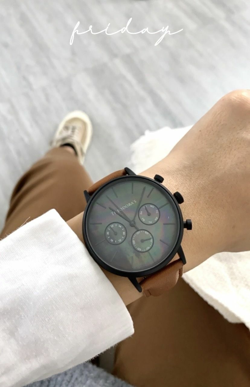 最後這款一週濾鏡,簡約的白色字型,運用英文草寫字體,讓隨手一拍的照片增添了更多的質感!是一款看似簡約,但使用起來能讓畫面大大加分的實用濾鏡!真三眼母貝黑錶面,搭配真皮橘棕錶帶,母貝的錶盤美一款都有獨特的紋路,轉動手腕的每一瞬間都有不同的美(商品連結)