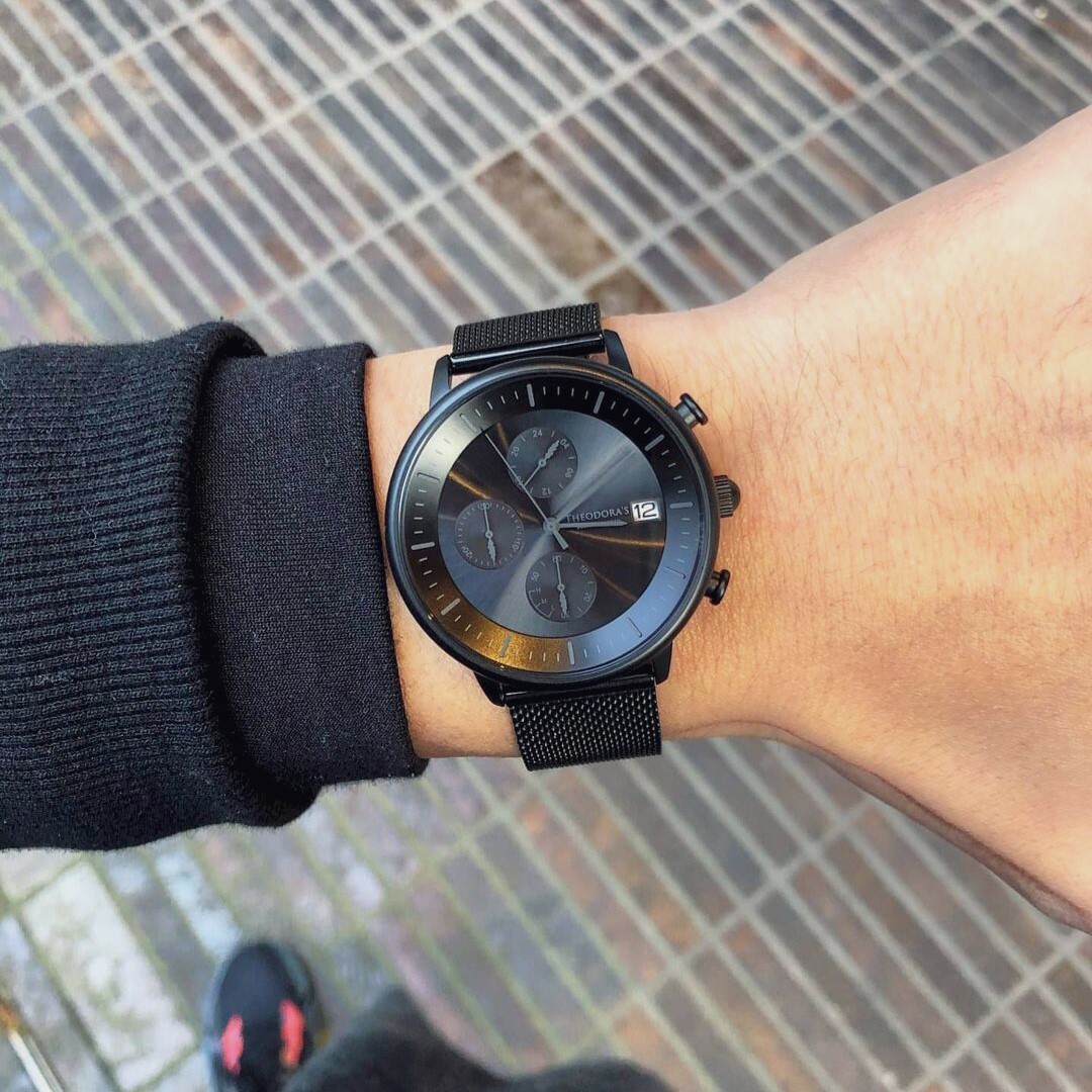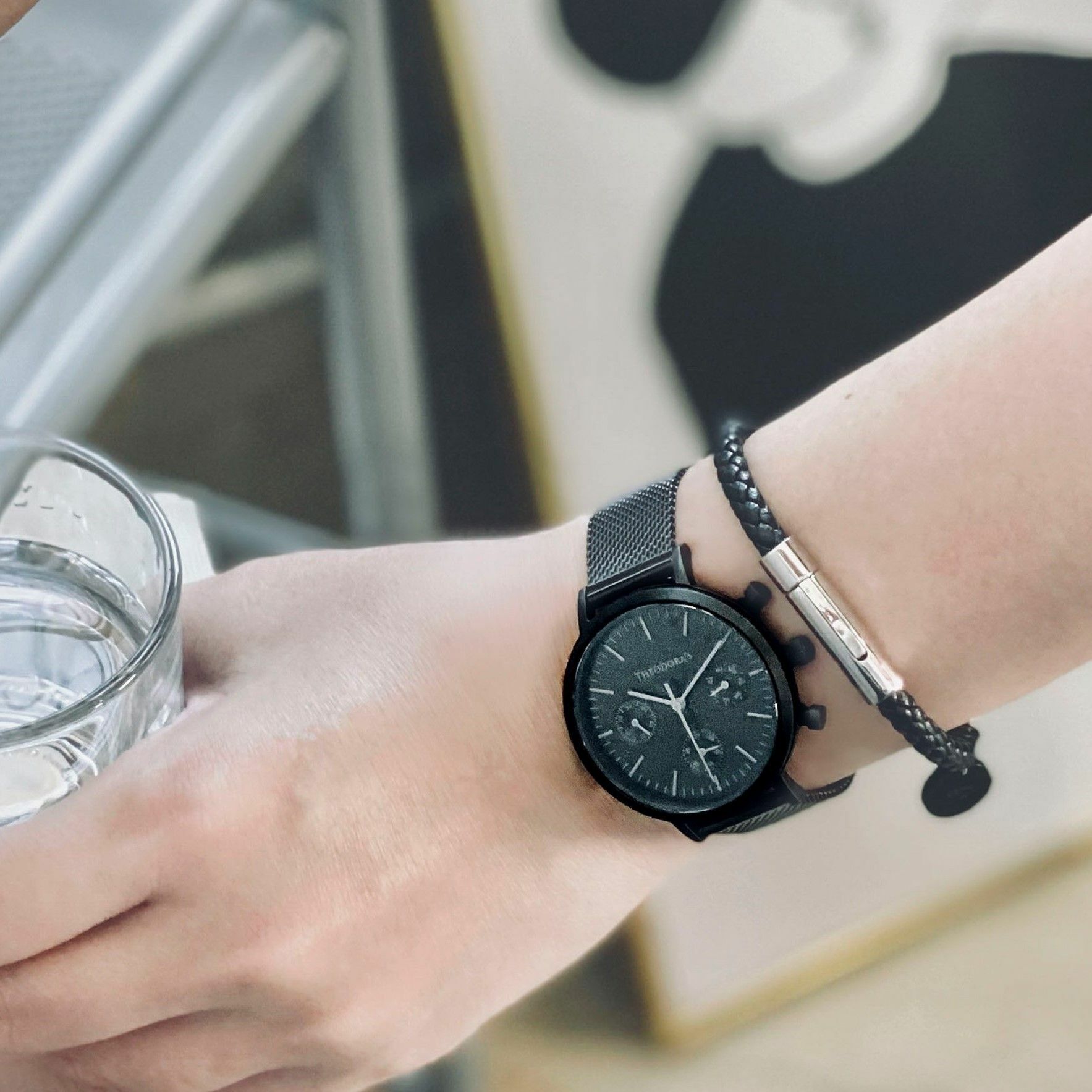極簡沉穩的全黑手錶,適合男生配戴,搭配三眼設計及功能,誰帶誰帥氣。