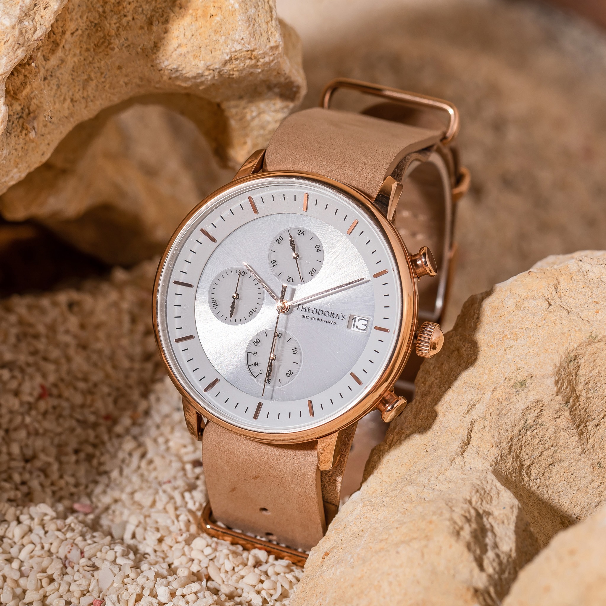氣質典雅的Hera,不論在錶盤上或是錶戴上都以玫瑰金呈現,不只襯托膚色更提升穿搭質感。