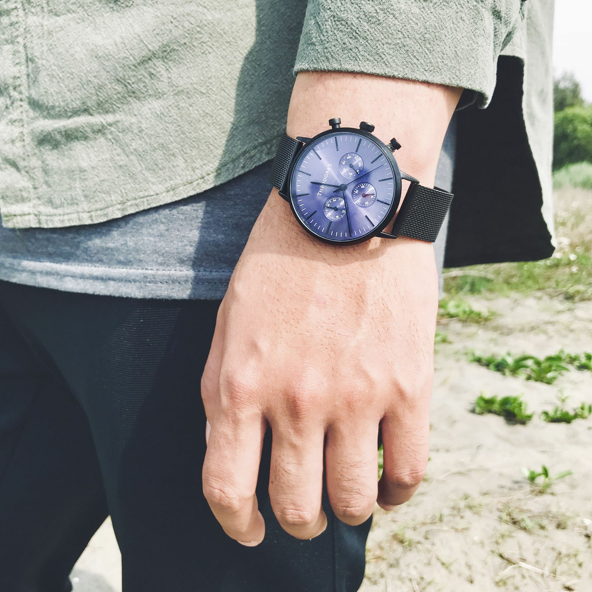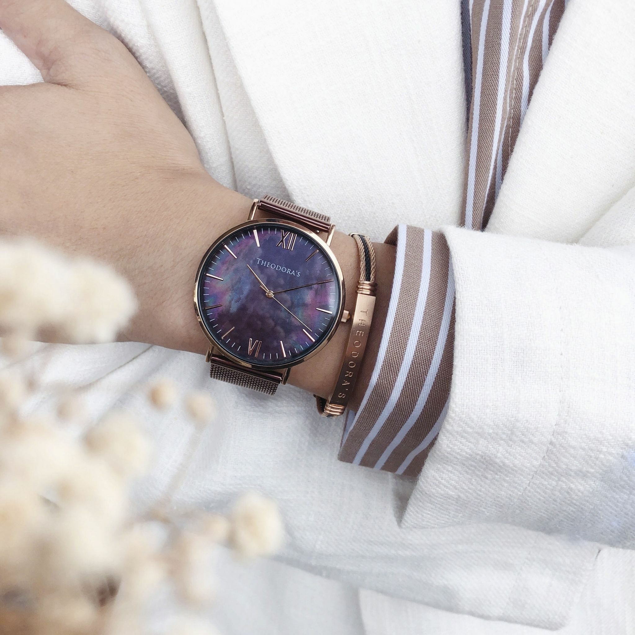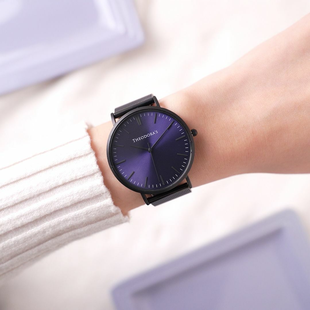 簡約經典藍紫錶盤搭配米蘭黑錶帶,前衛的藍紫色和黑色絕對百搭。(購買網址)