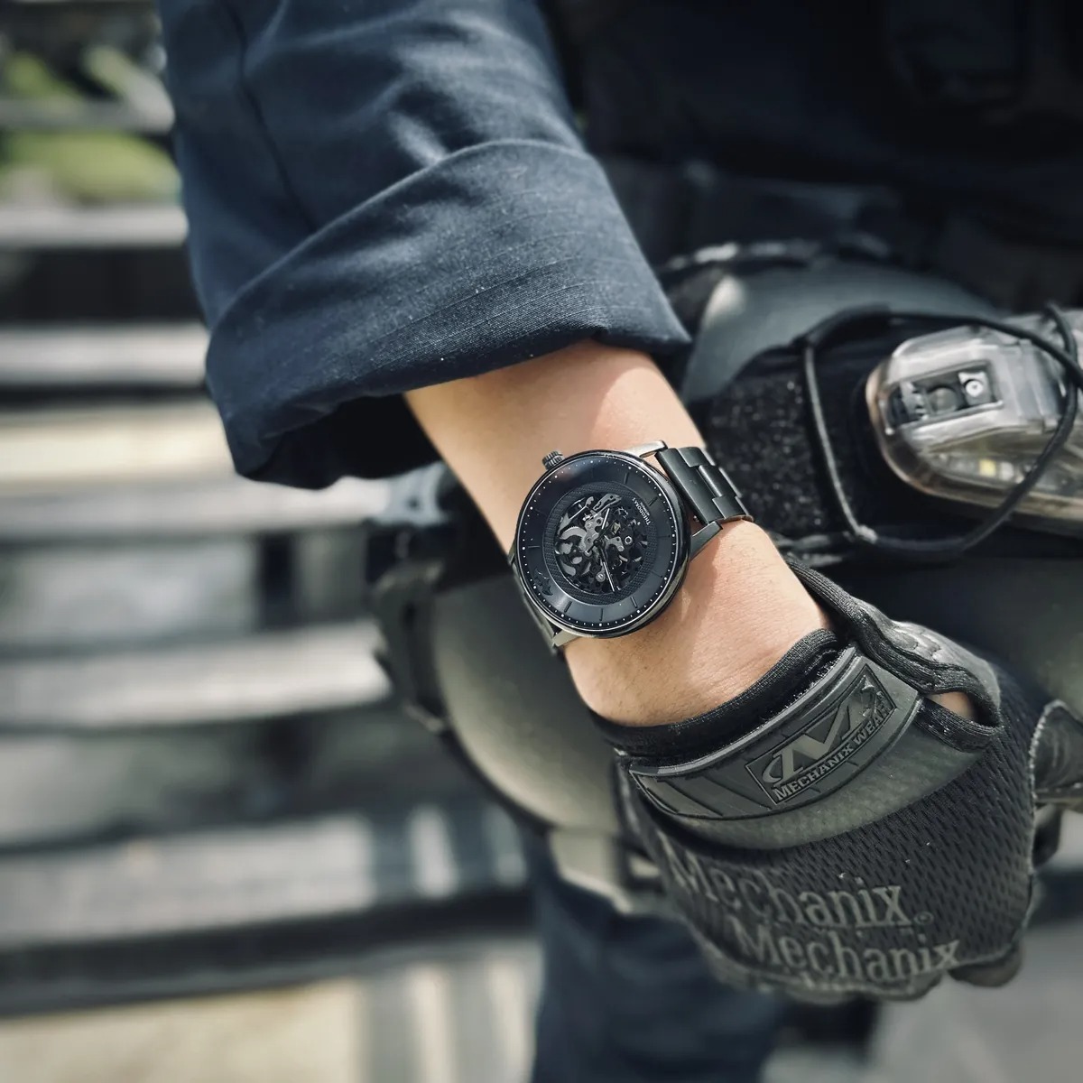 蝙蝠俠夜光機械腕錶 黑-防脫落鋼鍊帶黑