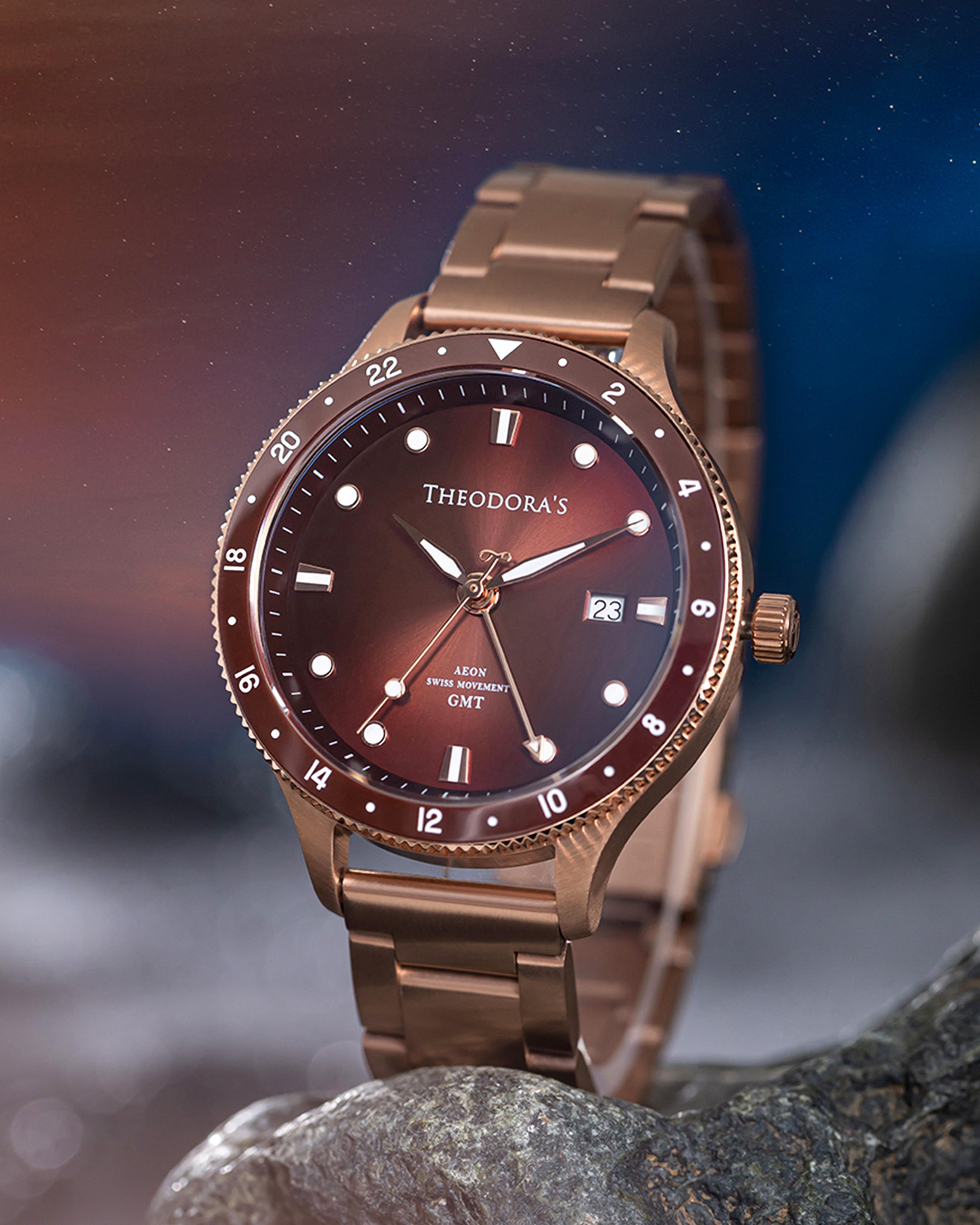 希奧朵拉在七夕前夕宣布推出年度新品手錶「Aeon-緣GMT兩地時區瑞士機芯腕錶」,此系列一次推出大小錶面,總共6個顏色,錶面皆採用藍寶石玻璃。