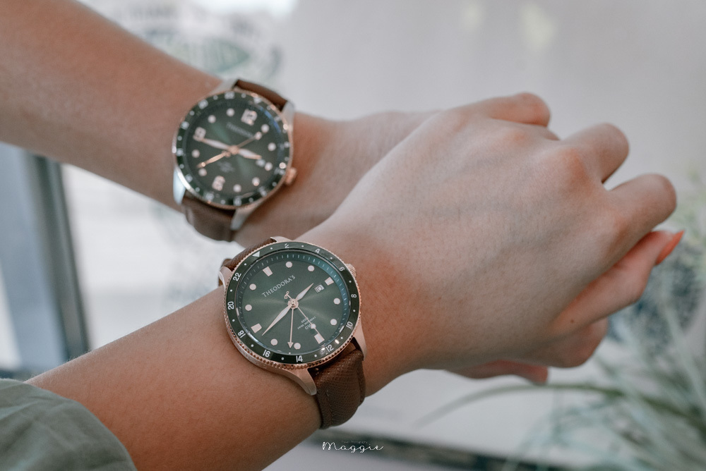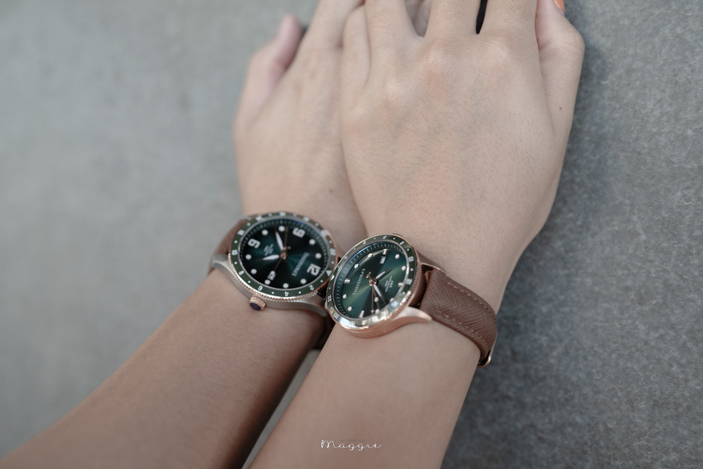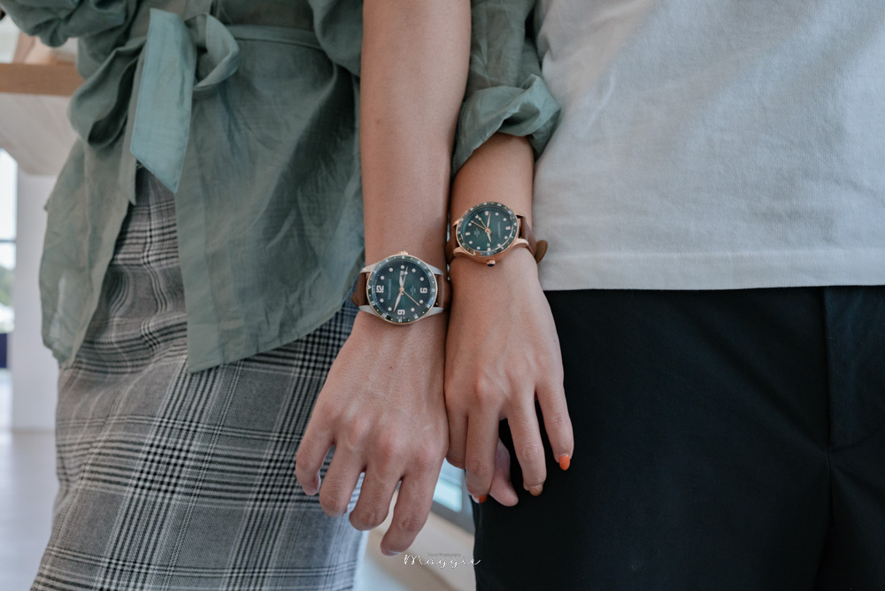 還有許多不同顏色的對錶組合,很容易選擇障礙,Theodora’s 代言人宋芸樺跟禾浩辰手上就是配戴這款「湖水綠」,綠也是我今年最著迷的顏色。其他配色也同樣搭配鋼鍊帶+防刮真皮錶帶,可隨心所欲替換風格,搭配當日穿著,或來個情侶OOTD。