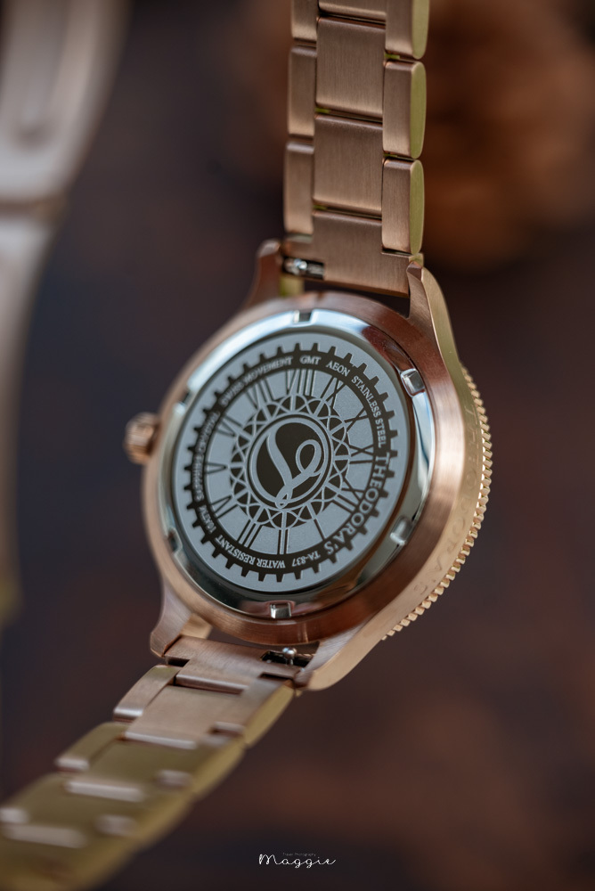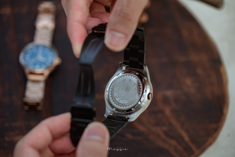 而底蓋似乎也有些玄機,該錶配備旋入式底蓋能夠緊密防水。
