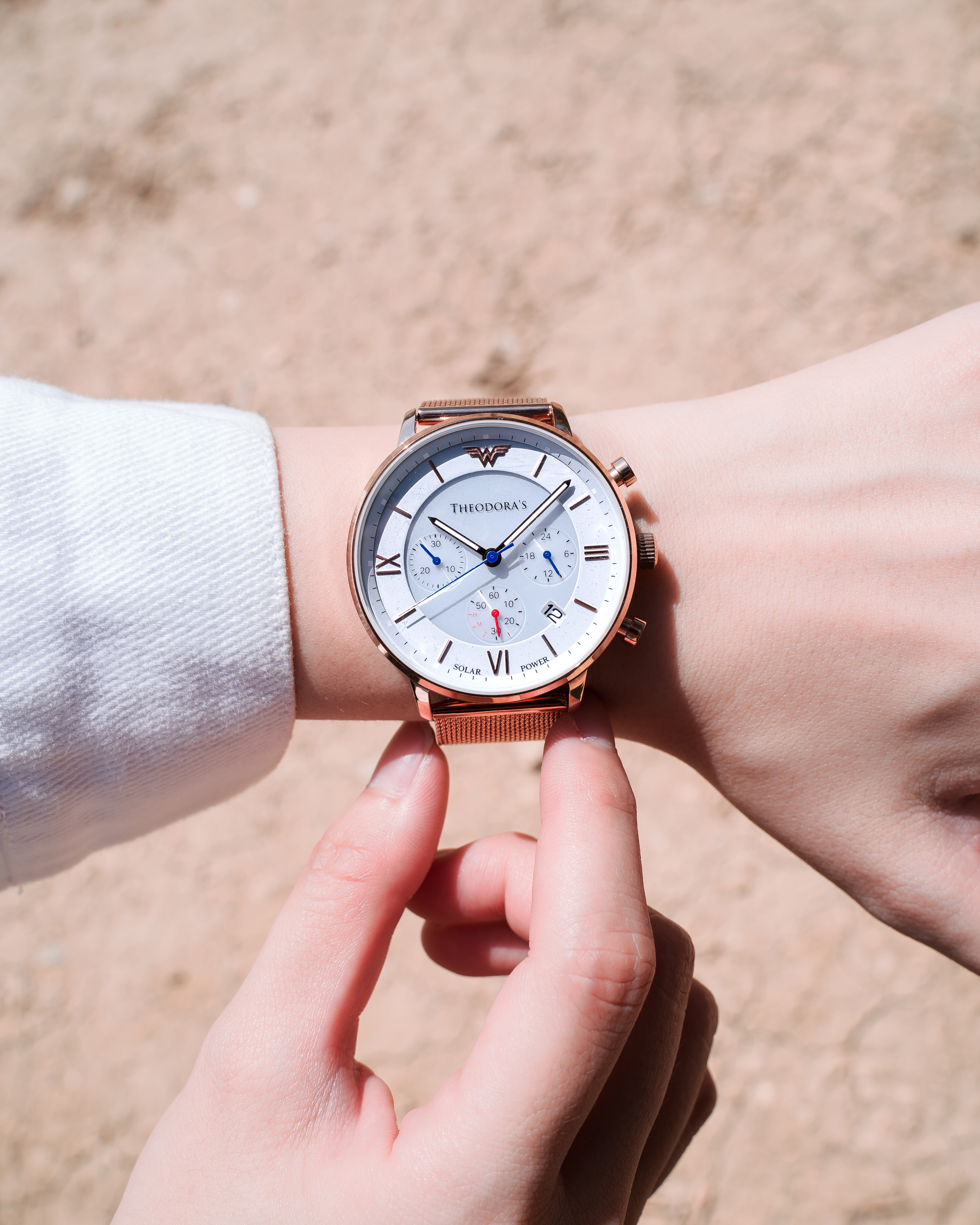 大錶面經典百搭,簡單乾淨的設計,觀看時間很輕鬆。希奧朵拉手錶皆提供終身免費換電池的服務,使用上無後顧之憂。
