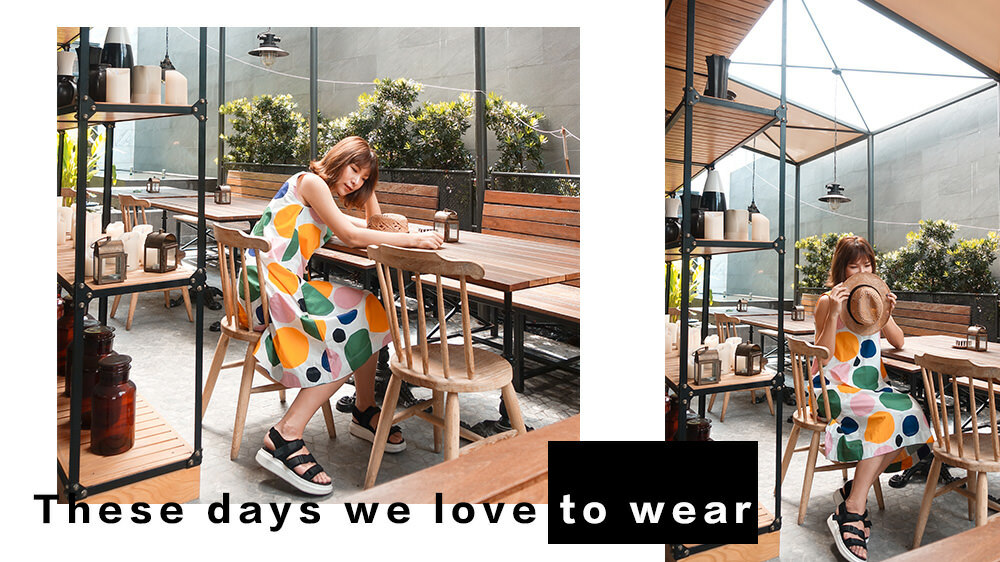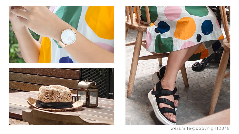 搭配的是涼鞋剛好它的顏色上有襯這件裙子的感覺是比較可愛的那一種。如果有長時間旅遊需求的朋友或是你不喜歡鞋底比較低或是平的朋友很推薦這一雙涼鞋真的超級無敵好穿。真皮的材質然後非常的好穿好走,重點是它非常修飾你的腿型會顯得非常的瘦長。
