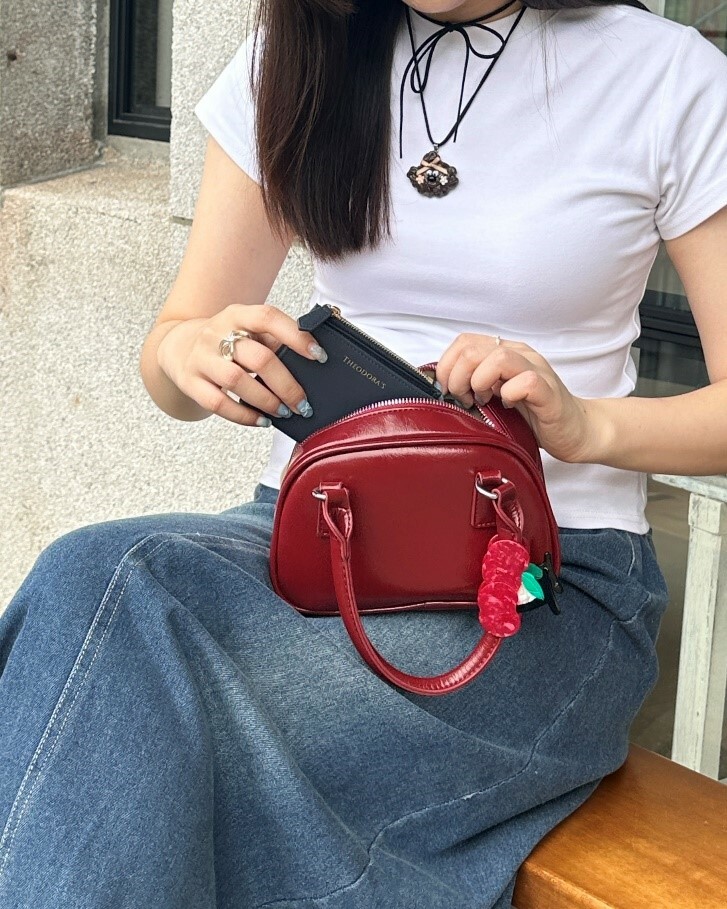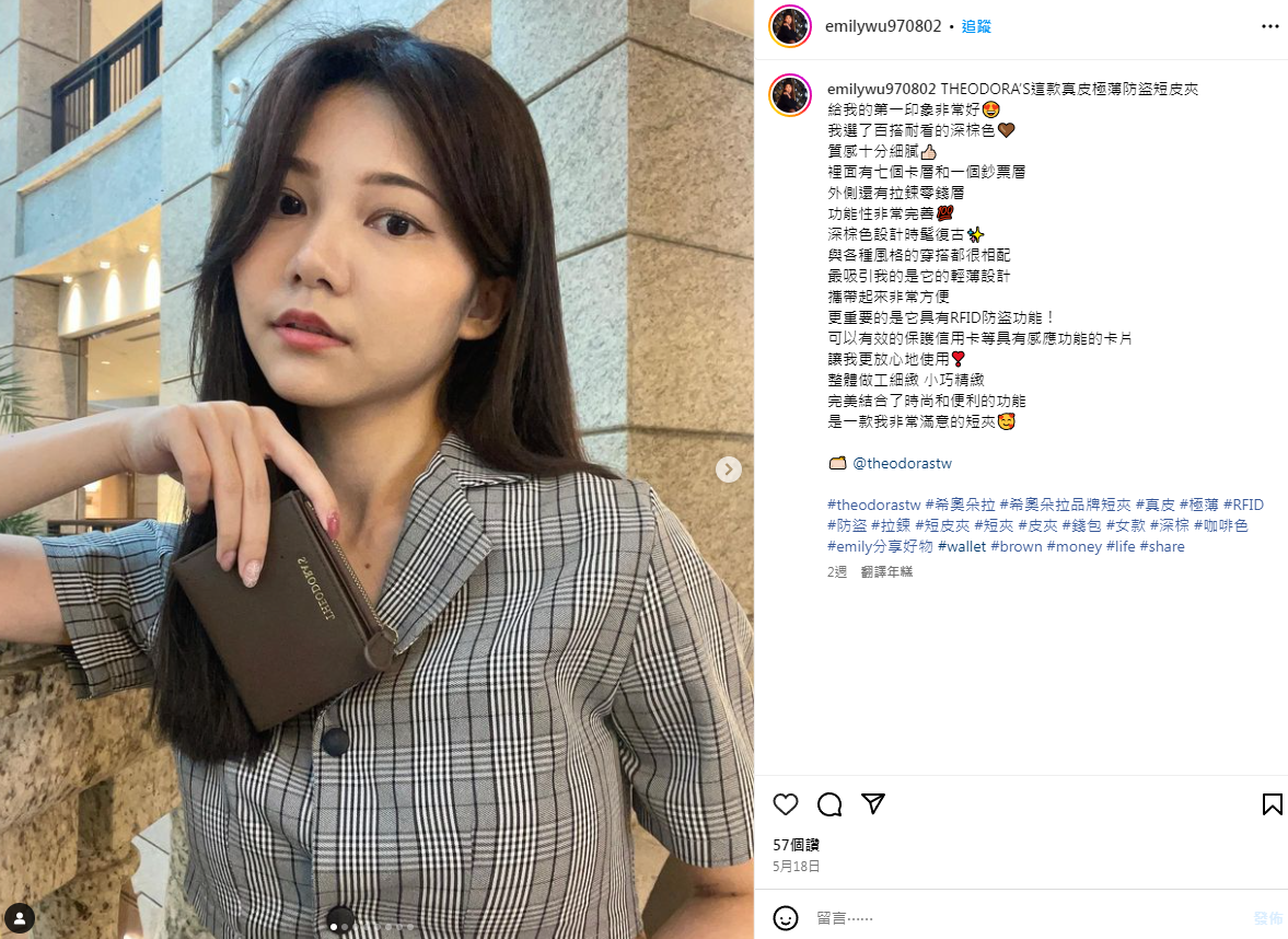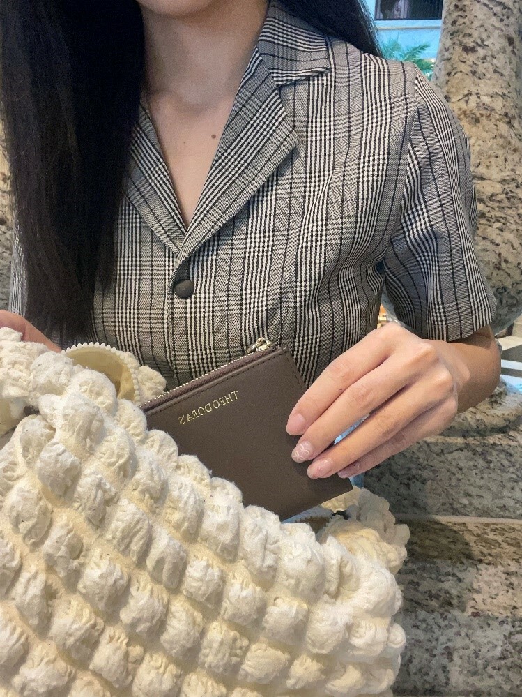 特別適合溫暖、內斂的你;手持深棕色短夾,讓人感覺更加可靠。