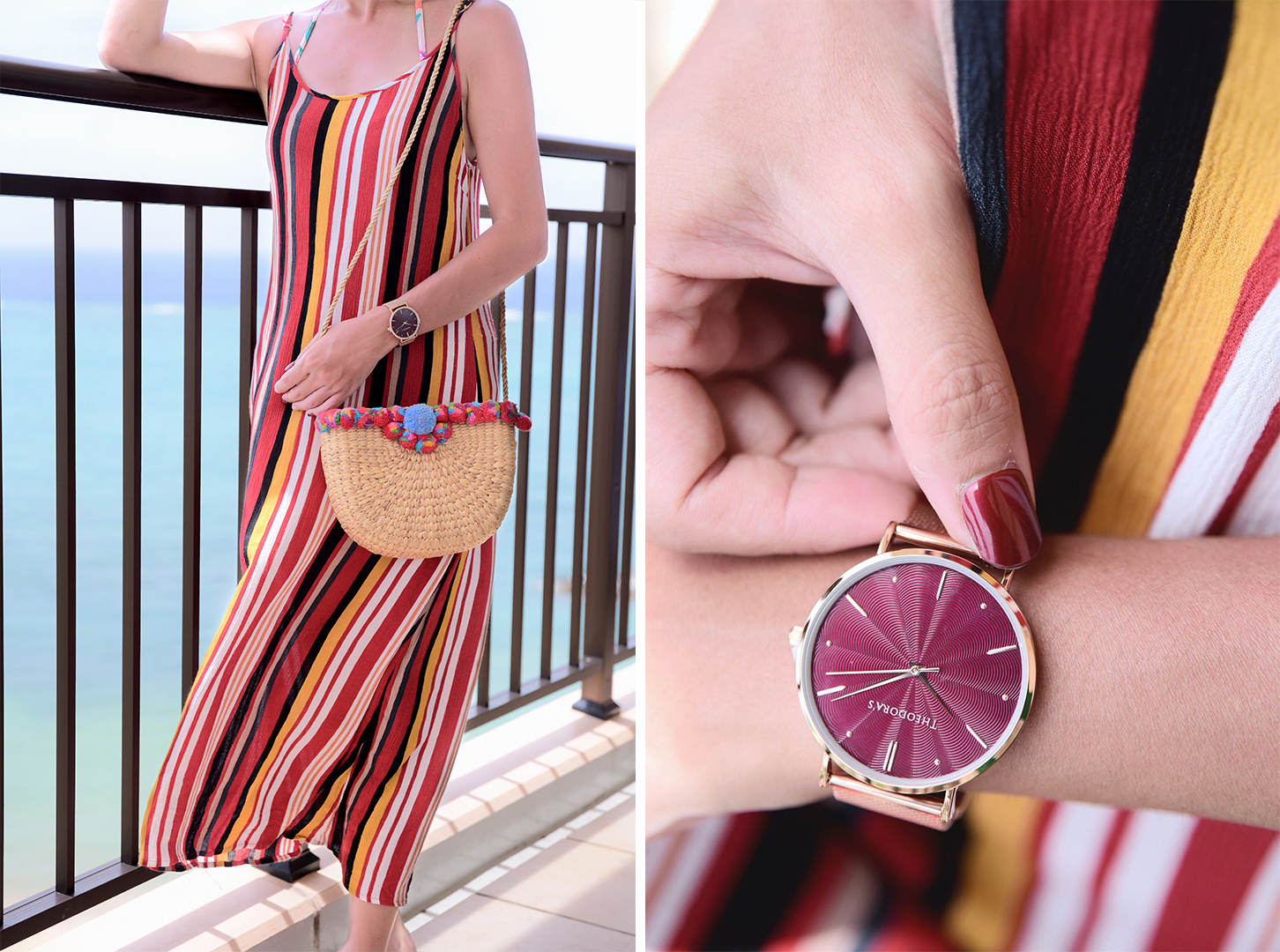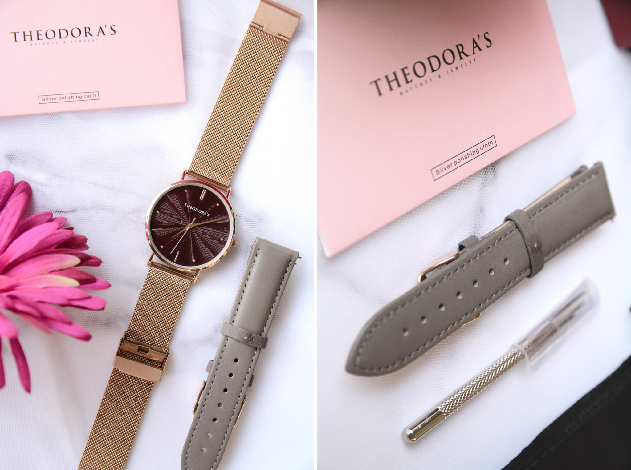 我喜歡他們家的手錶是因為,現在很流行玫瑰金或者金色錶帶,但多半在錶面的色系上都呈現比較冷的色系,尤其以黑色和白色居多,對於很喜歡色彩和濃厚熱帶感的我,雖然喜歡金色錶帶,但一直找不到適合我的錶面,直到看見了 「Theodora’s 」品牌的手錶,大紅色的錶面,讓我一眼就決定選擇它,還有什麼比紅色更具有熱情呢 ? 然後,購買他們手錶,除了金色錶帶外,因為剛好遇到不定期的活動,這次的活動是購買手錶會附送一條真皮錶帶,我這次拿到的是深灰色系,更棒的優點還有 : 「保固一年」、「終生免費換電池」、「15天鑑賞期」。