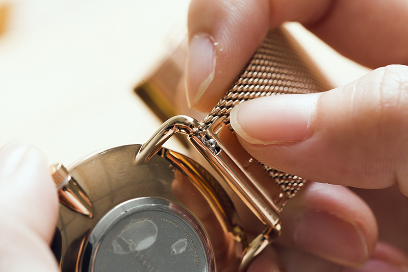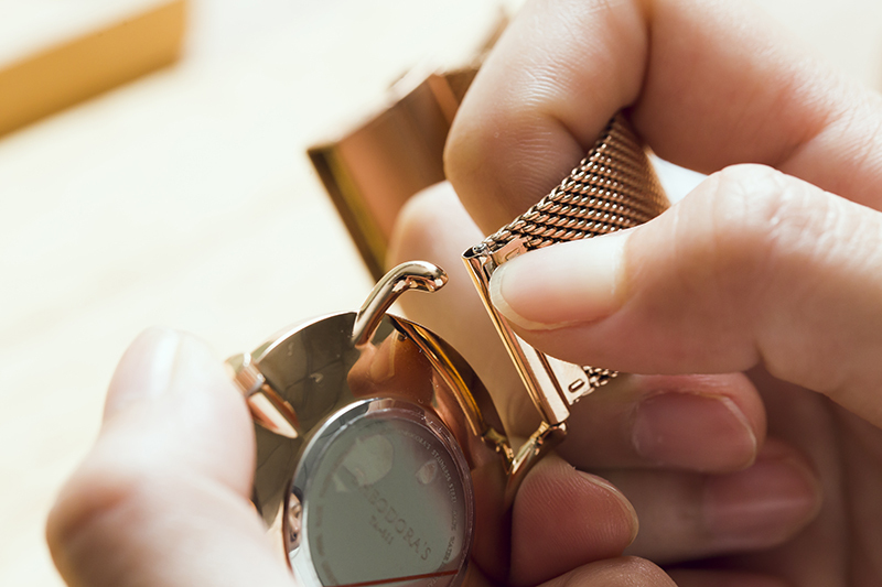 希奧朵拉手錶的設計初衷就是為了讓配戴的人可以輕易更換喜歡的錶帶,所以在錶帶的設計上幾乎都是採用卡榫式設計,只需要幾個步驟:按壓卡榫、對齊、確實卡住,就完成整個手錶的裝置了。如果還不清楚的話,一起往下看看,這篇文章要來大家慢動作圖文解說一下!