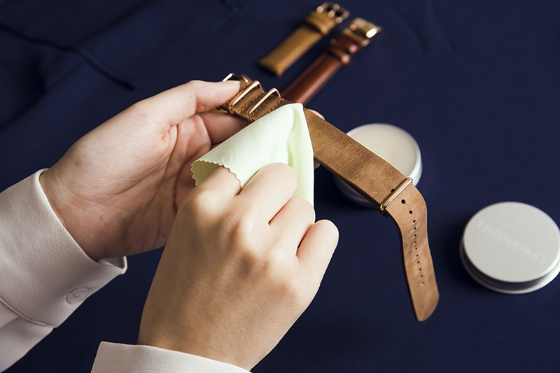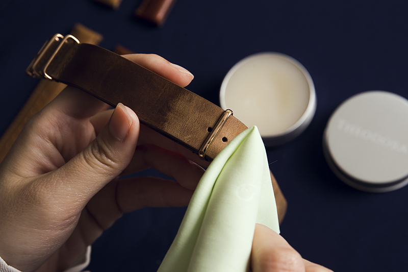 把握這幾個要點,錶帶都有2-3年的使用壽命,如果搭配希奧朵拉附贈的貂油定期保養,不僅可以使顏色更加均勻,也可為錶帶延長壽命。由於真皮吸水後可能會有掉色或移染,建議先於不明顯的小地方測試,再開始進行保養。接下來,就來教大家如何使用貂油保養你的皮革錶帶。