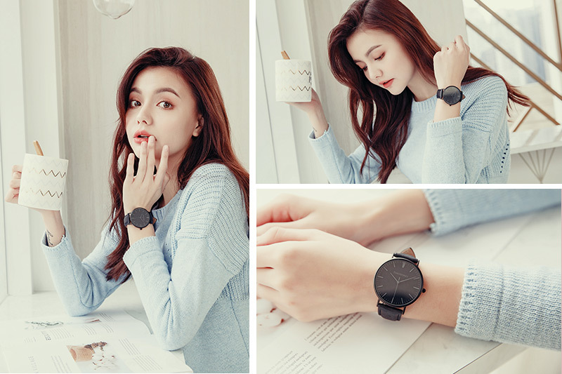 搭配真皮黑色錶帶也是非常受歡迎的款式,溫暖的真皮質感,包覆感極佳,戴起來十分柔軟舒服,更多了一分知性氣質。