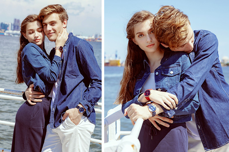 這個系列總共有白、黑、紅、藍、粉五個顏色,白錶面嚴格說起來應該稱為香檳白金,因為在燈光的照射下,看起來像是銀白色,但轉動時的角度卻又不時泛起金色光芒,看起來就像酒杯裡的金黃香檳一樣迷人,十分別緻特殊。