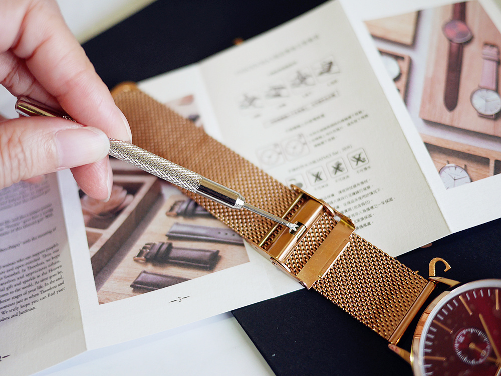 另外,米蘭玫瑰金錶帶請使用小工具調整腕圍,千萬不要使用指甲喔~