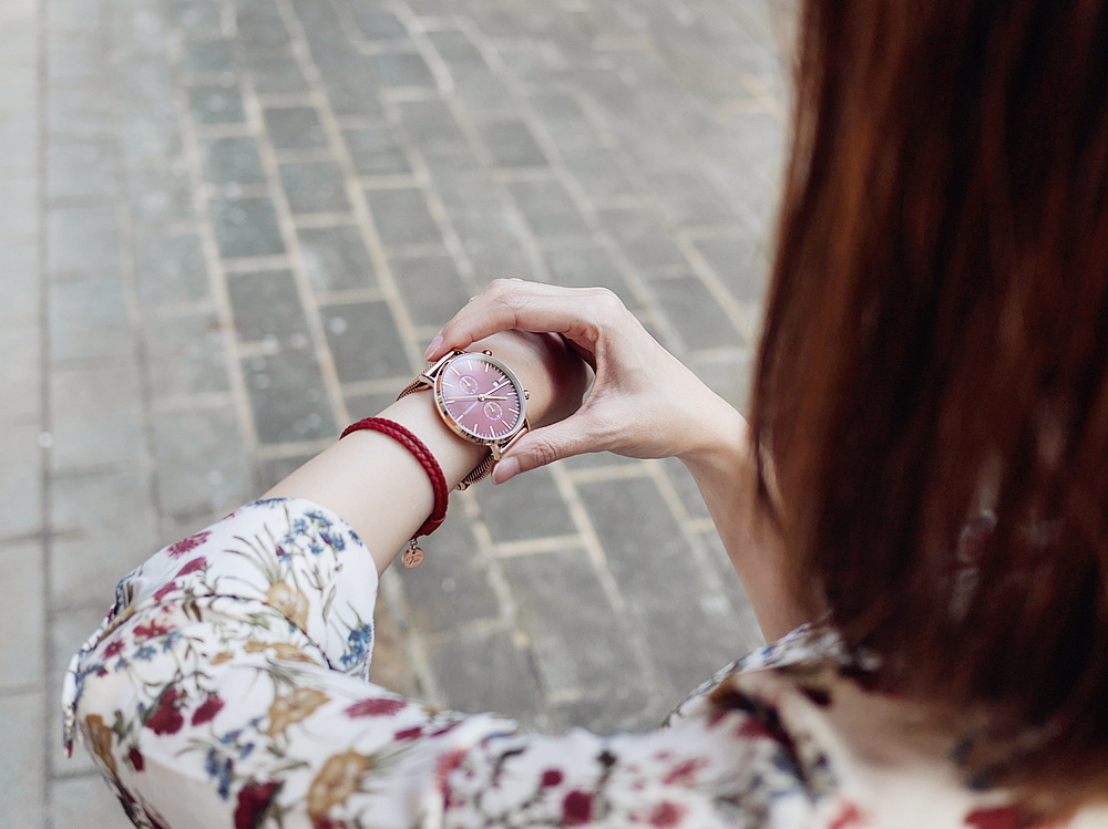 再加上玫瑰金的錶帶,整個人看起來超亮眼!