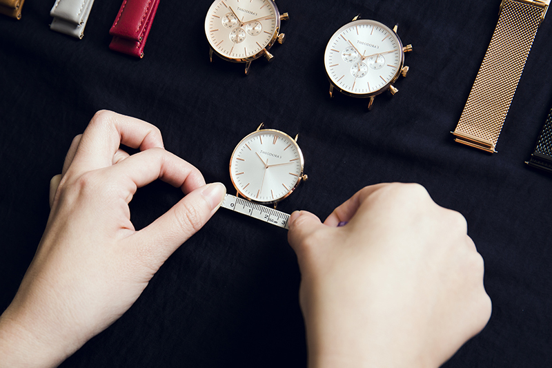 如圖所示,希奧朵拉的手錶錶耳寬度皆為20mm=2cm,所以即使是不同品牌的手錶,只要表耳寬度一致,都能夠相互替換。