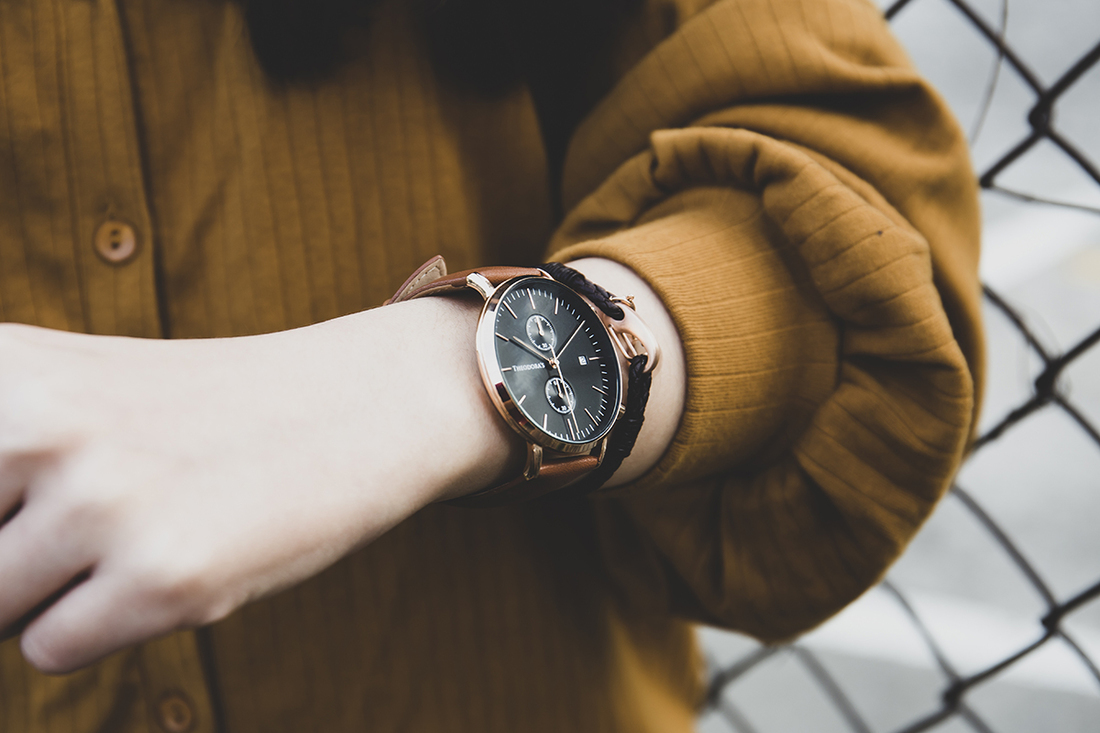 真皮錶帶戴在手上溫暖舒適,橘棕色彩則為黑色錶面注入了一點溫暖與活潑的氣息,有點暖又有點神祕,就是這樣的色彩,讓它泛著獨特的美。