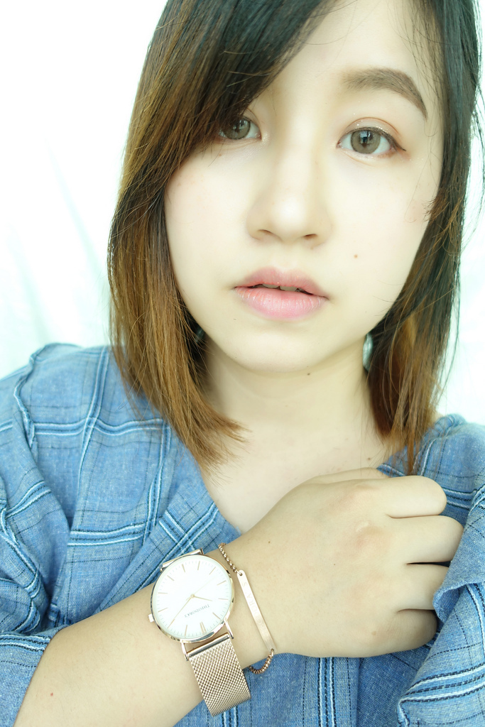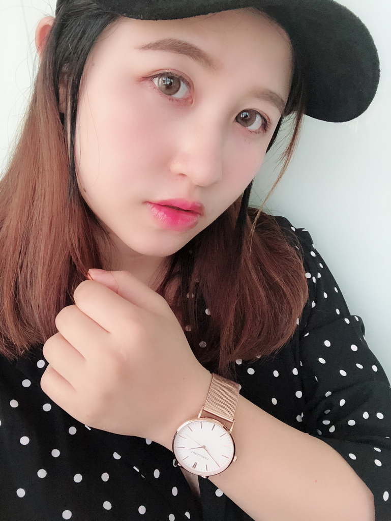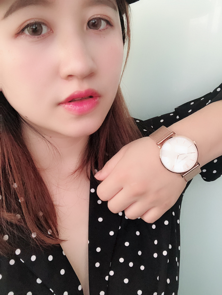實際配戴Gaia 極簡羅馬花紋金屬腕錶 雕花白-米蘭玫金