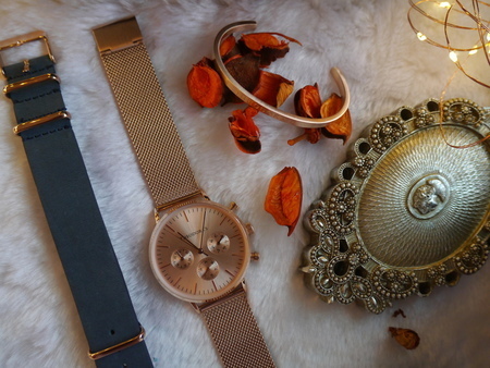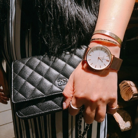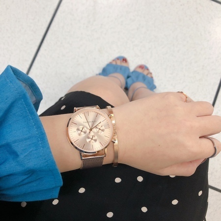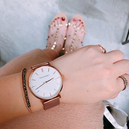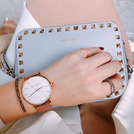 讓個性中帶著一點溫柔! 不失時髦感的金屬米蘭玫金錶帶,就是最好的拍照配件!
