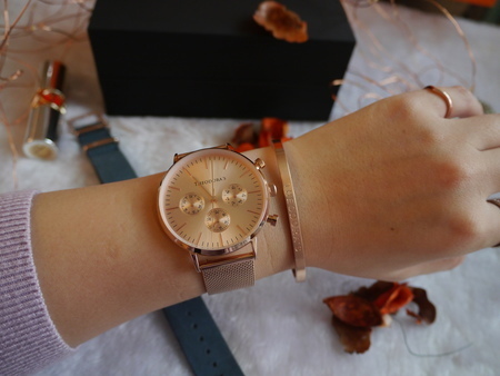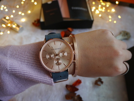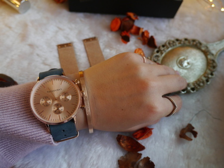 我一直想要一款充滿自我個性三眼的手錶,沒想到在希奧朵拉找到了!! 粉膚色的錶面柔和了中性大錶面的設計