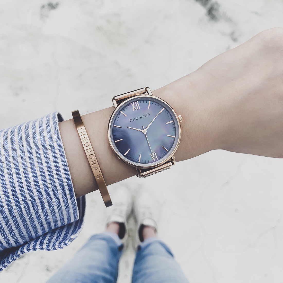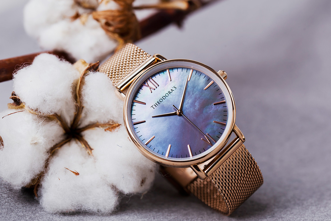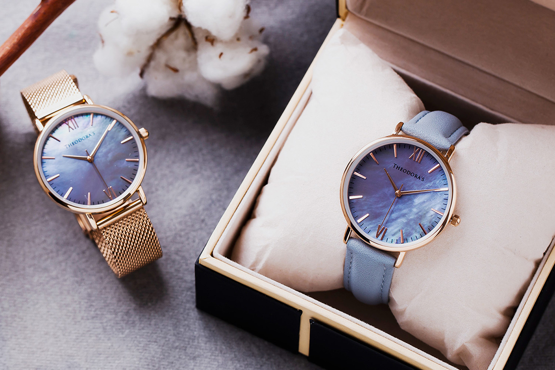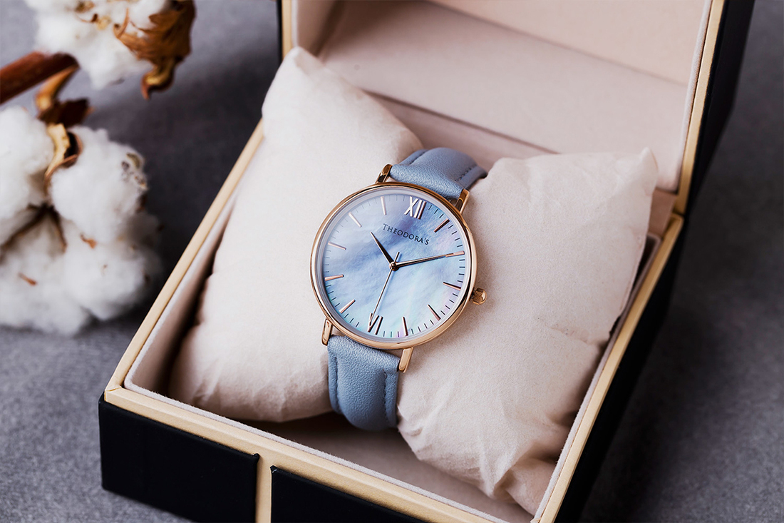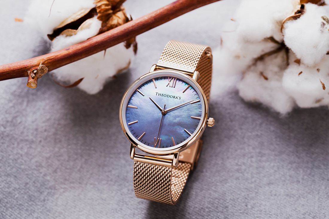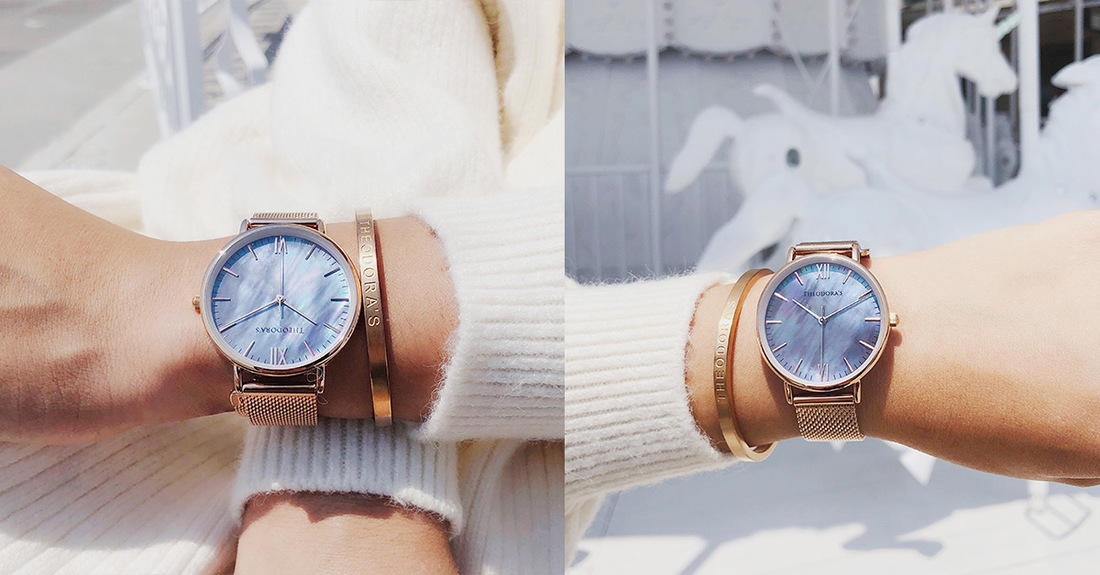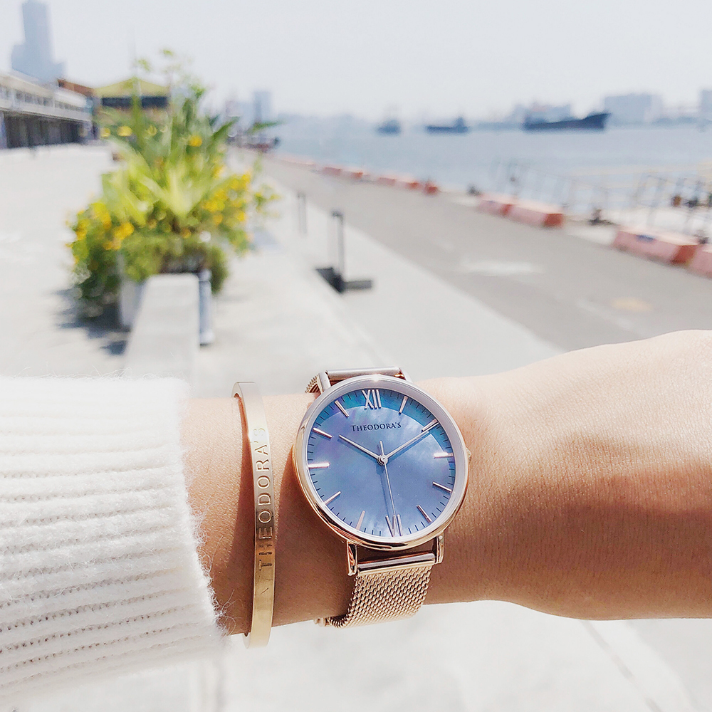 喜歡莫藍迪色的女孩有福了,希奧朵拉今年推出的這款超氣質的美錶,錶面是莫藍迪灰藍色,搭配優雅的玫瑰金錶帶,美麗輕巧的搭配,絕不能錯過!