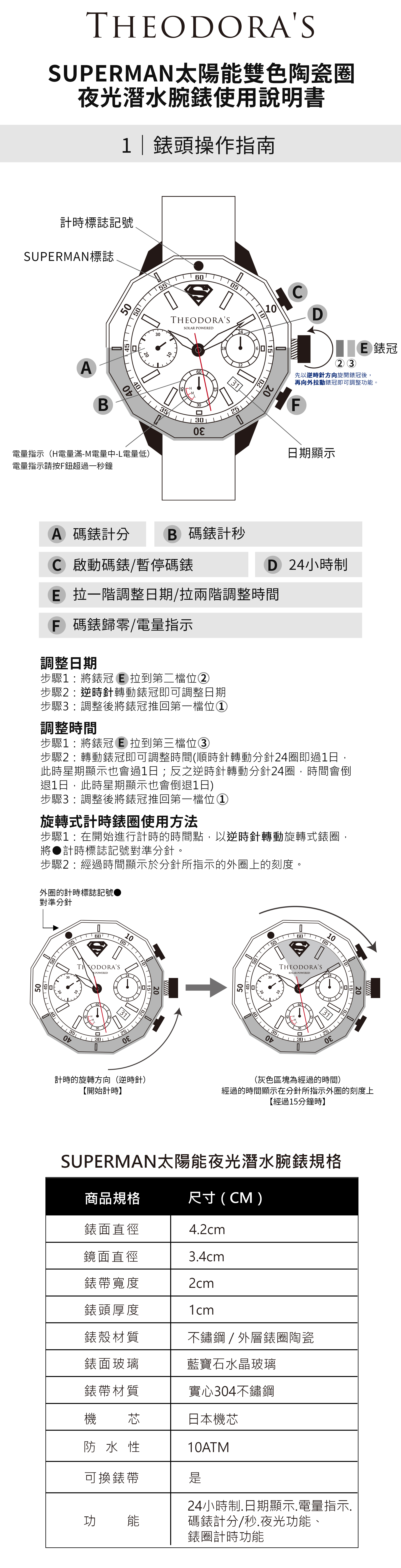 SUPERMAN 太陽能雙色陶瓷圈夜光潛水腕錶